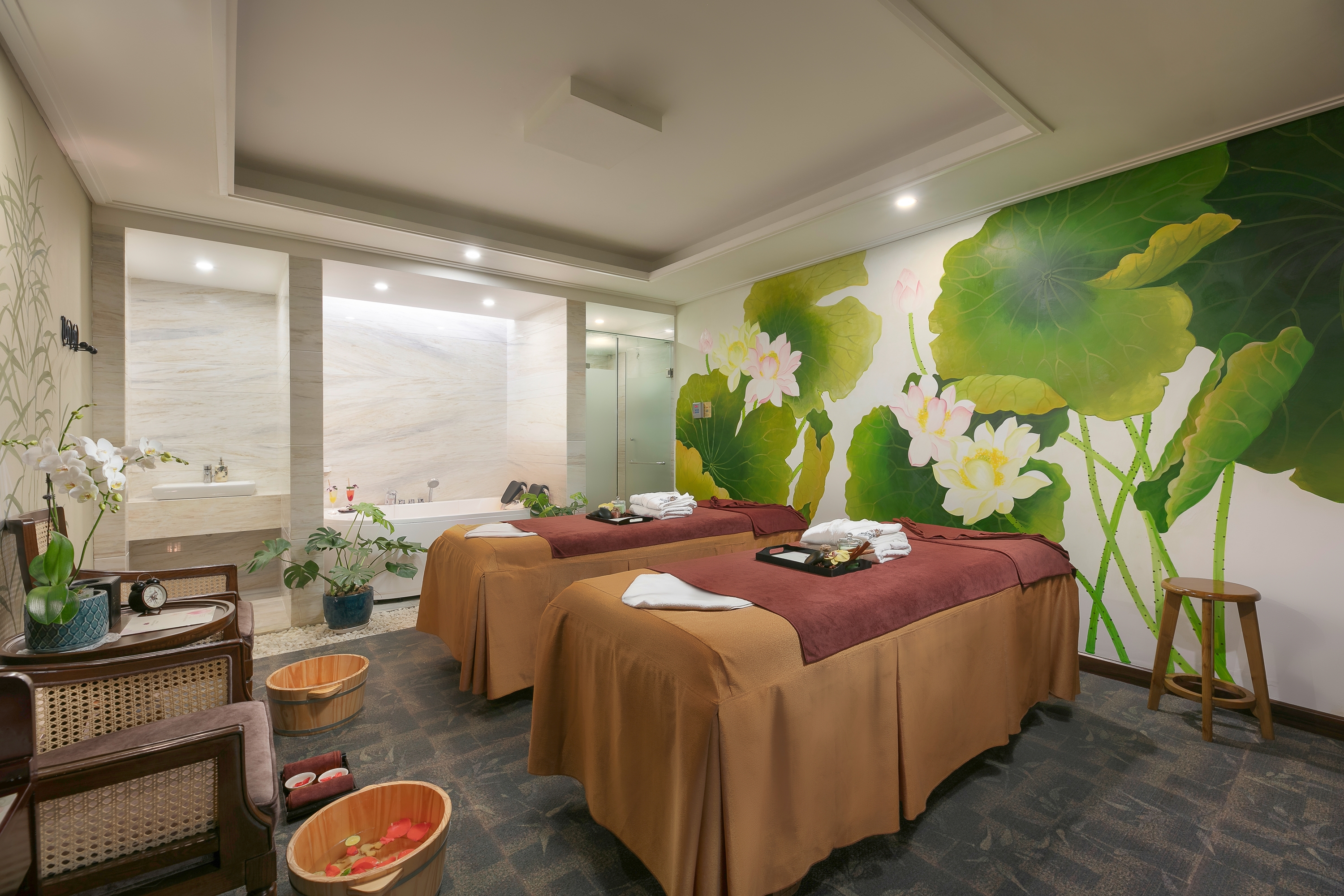 宽敞美丽的房间,每间都有特定用途,供您使用。我们提供各种按摩和美容护理,顾客有机会在豪华典雅的环境中尽情放松身心