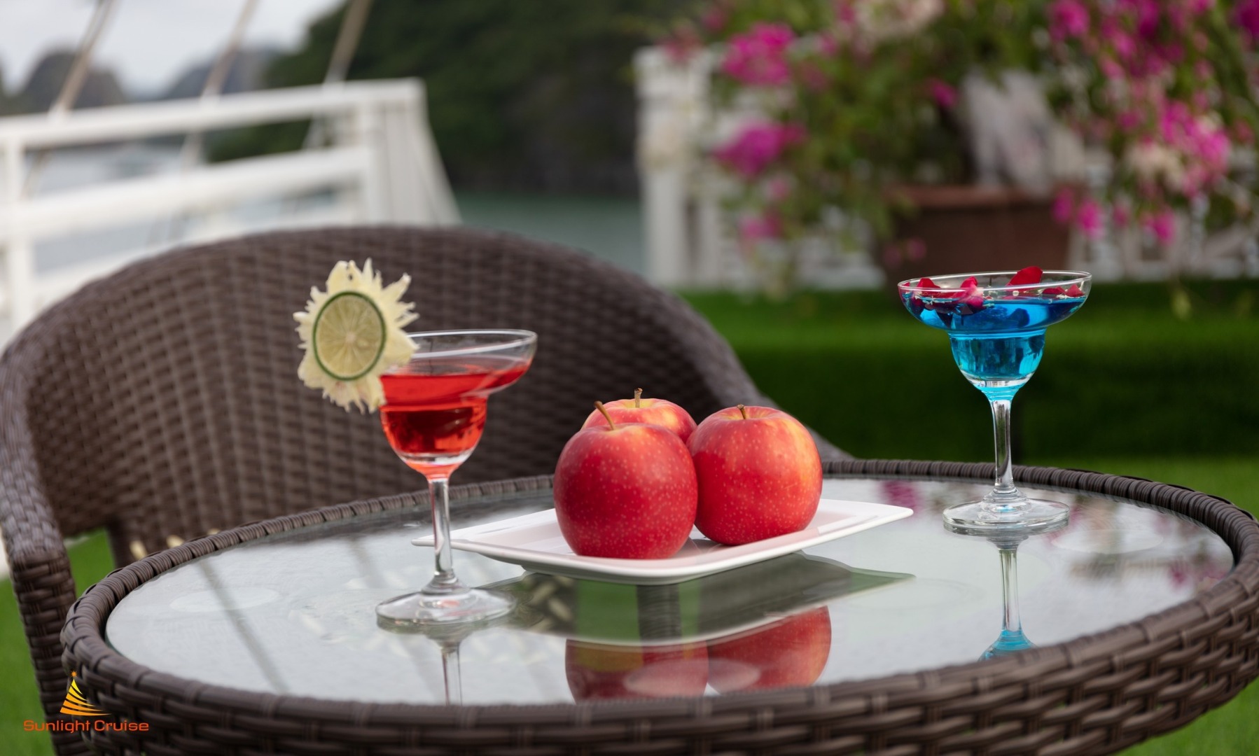 在日光浴平台上参加派对的同时,在下龙湾见证壮丽的日落