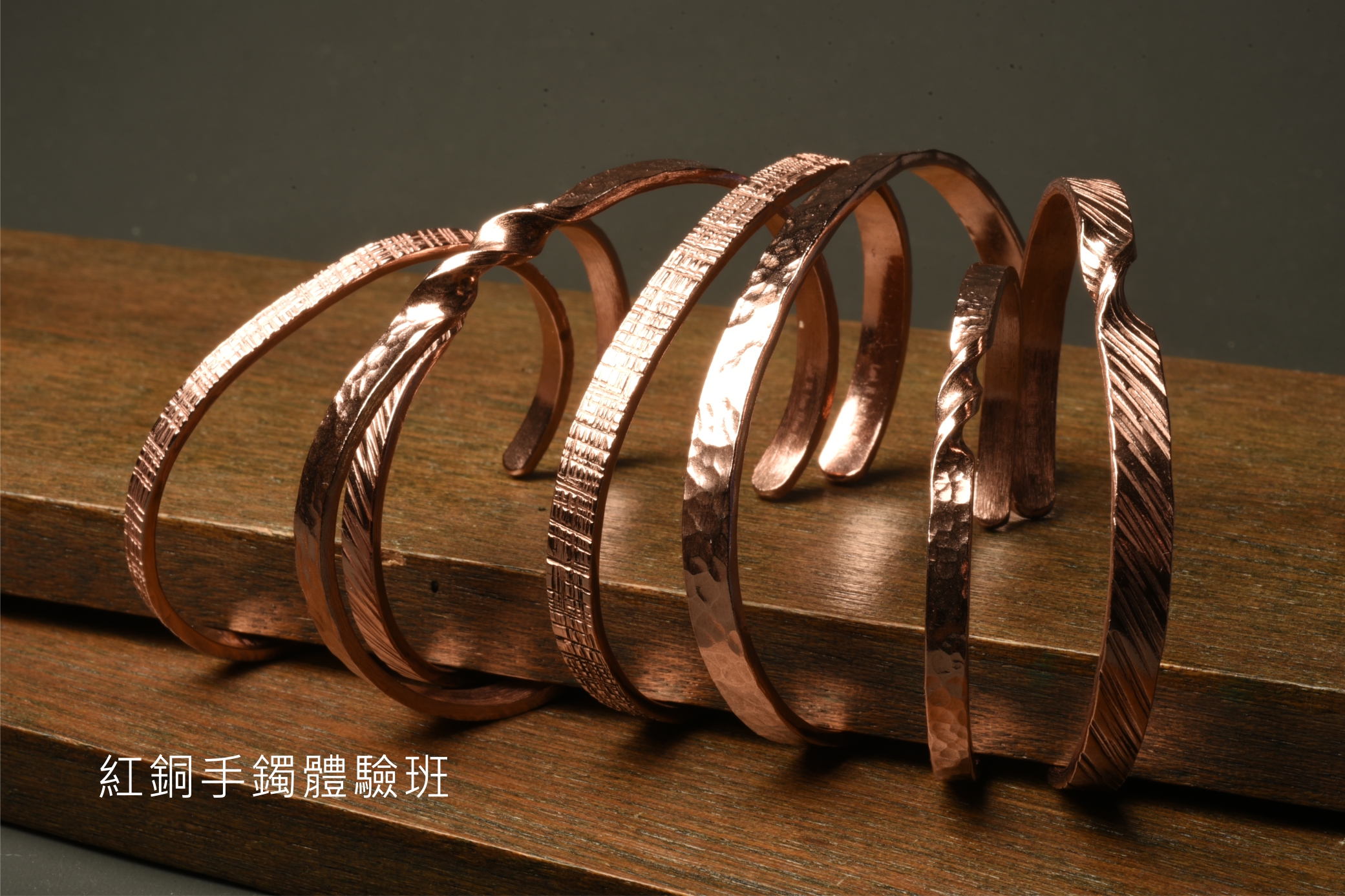没有饰品制作经验的您也可以参与。学员可以选择红铜(玫瑰金色) 或黄铜(金色),由专业导师教导,让你体验传统金工包括锤纹等不同技术。于舒缓及毫无压力的环境下,让您做出您专属、独一无二的手镯,是艺术和创作的结合。