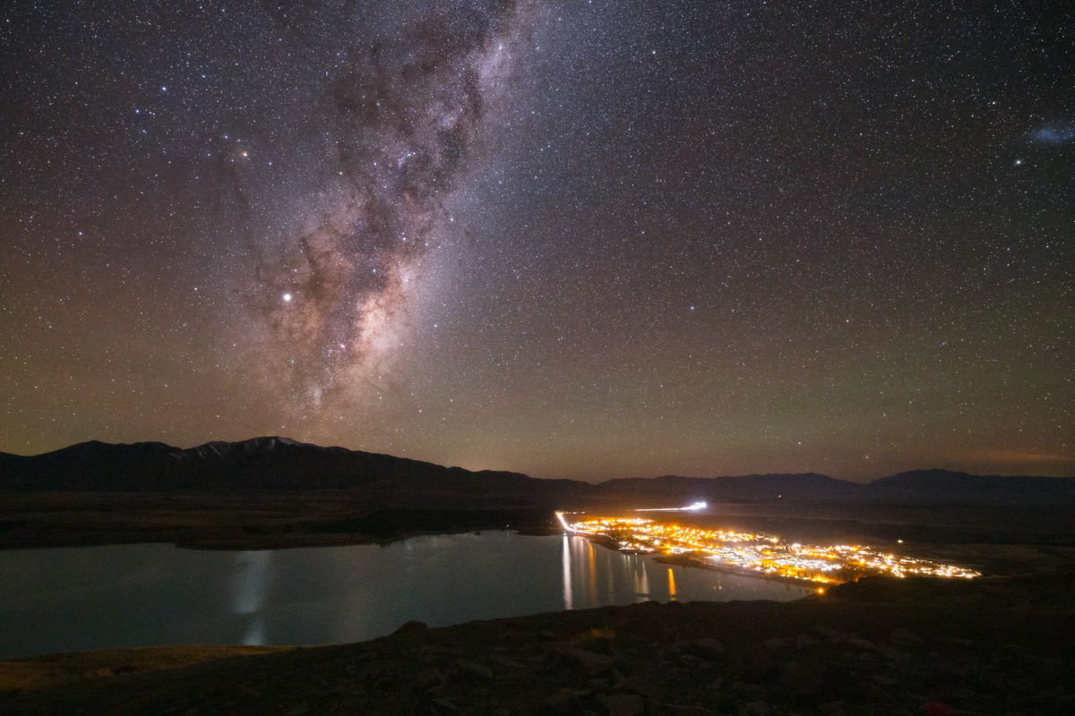 银河照亮了 Tekapō 村上空