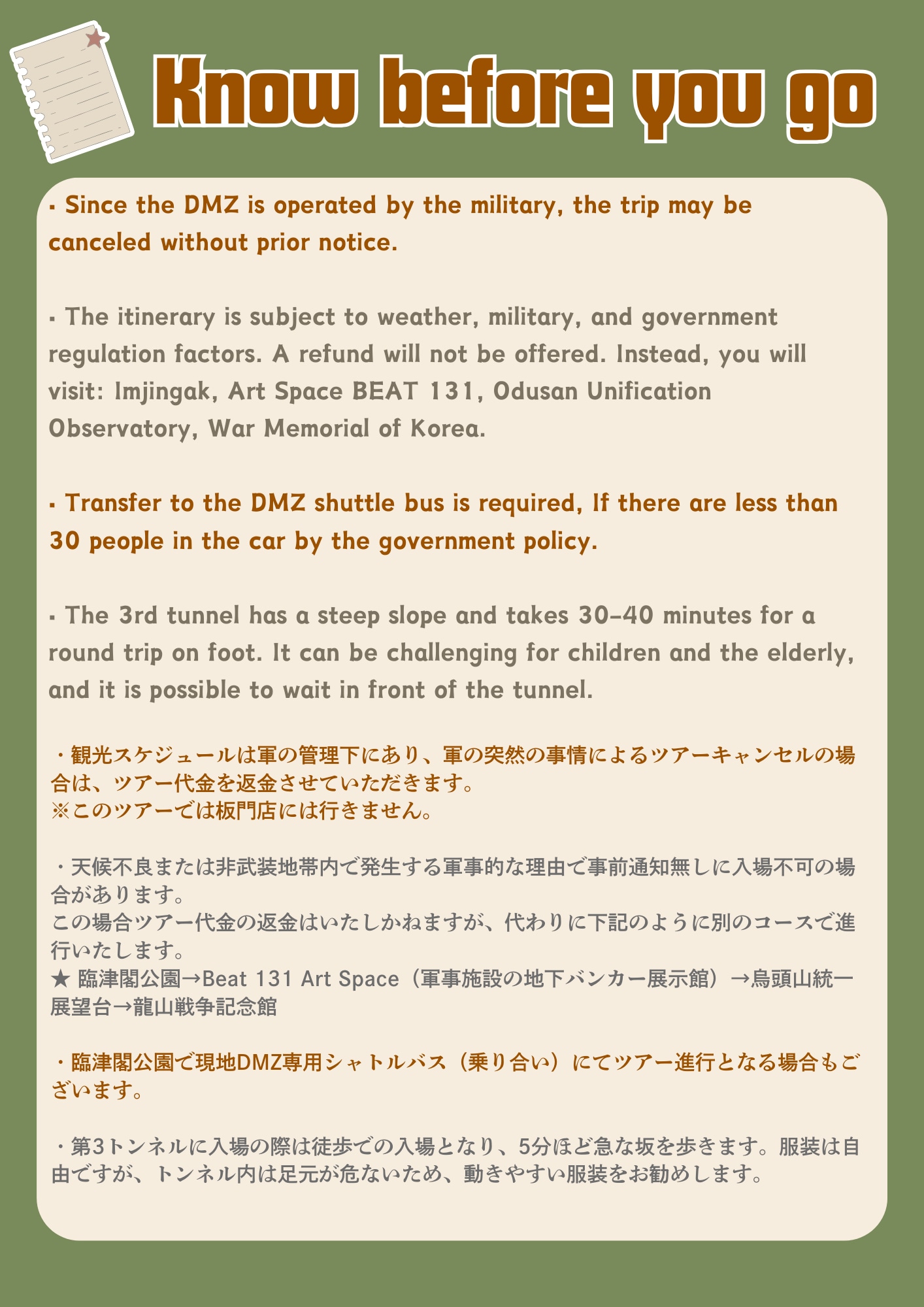游览位于南北朝鲜边界的朝鲜非军事区 (DMZ)。了解韩国的历史和文化。