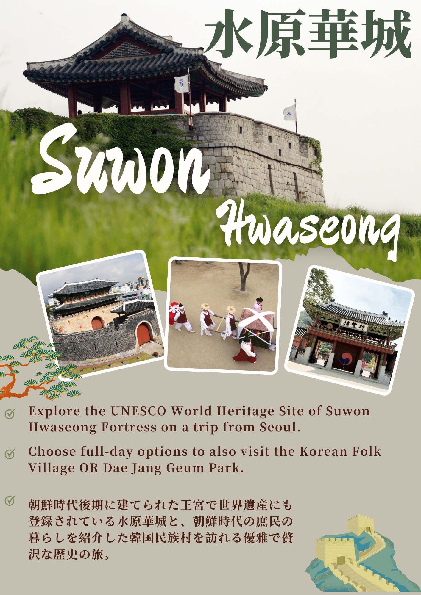 首尔出发,水原华城及民俗村一日游