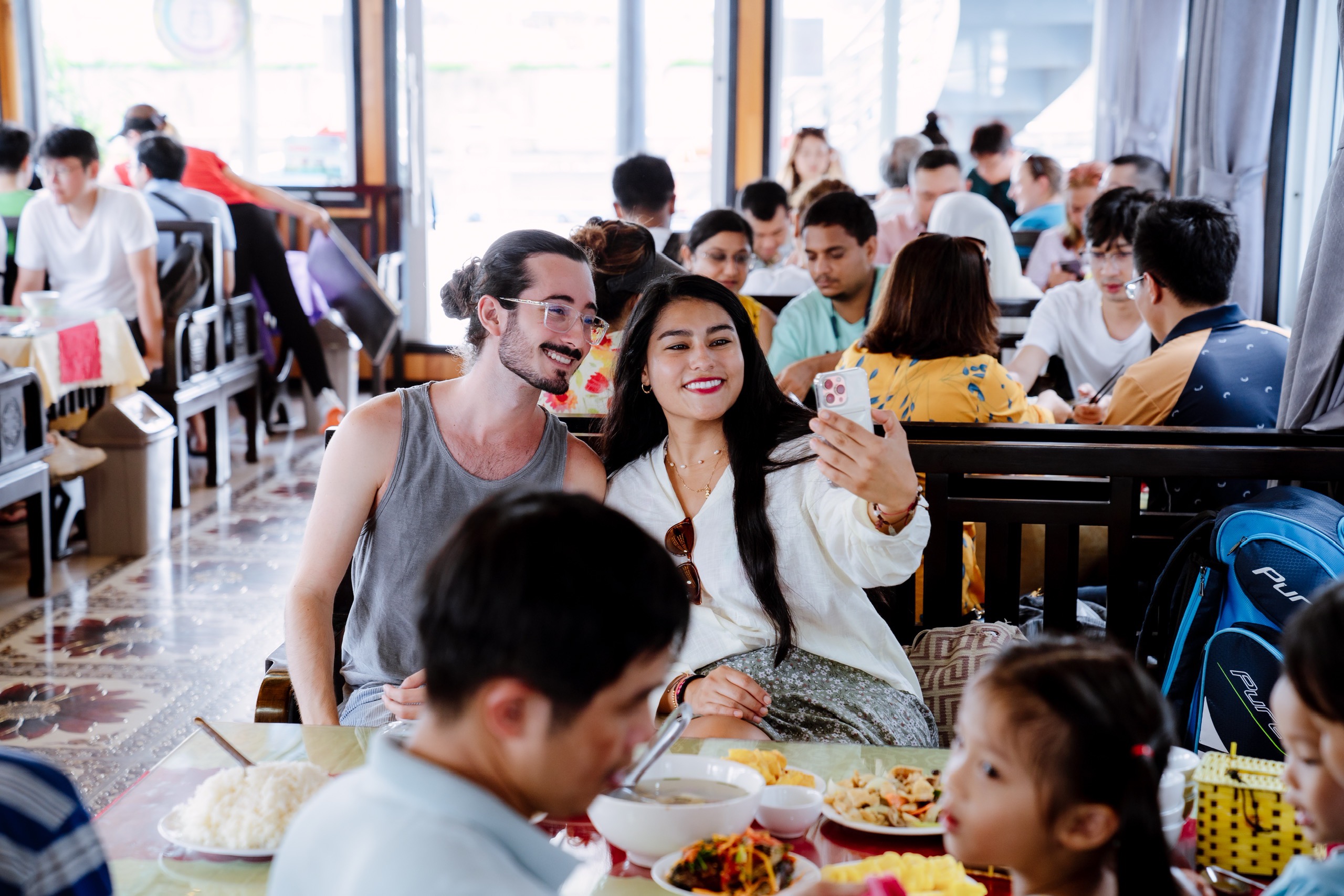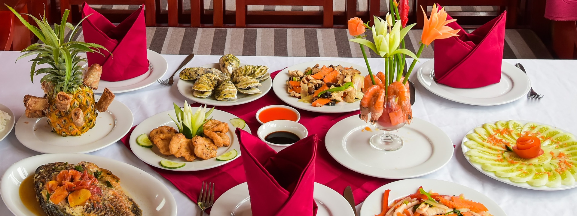 在这个宽敞的美食区舒适地用餐,品尝美味的海鲜和其他越南特色菜!