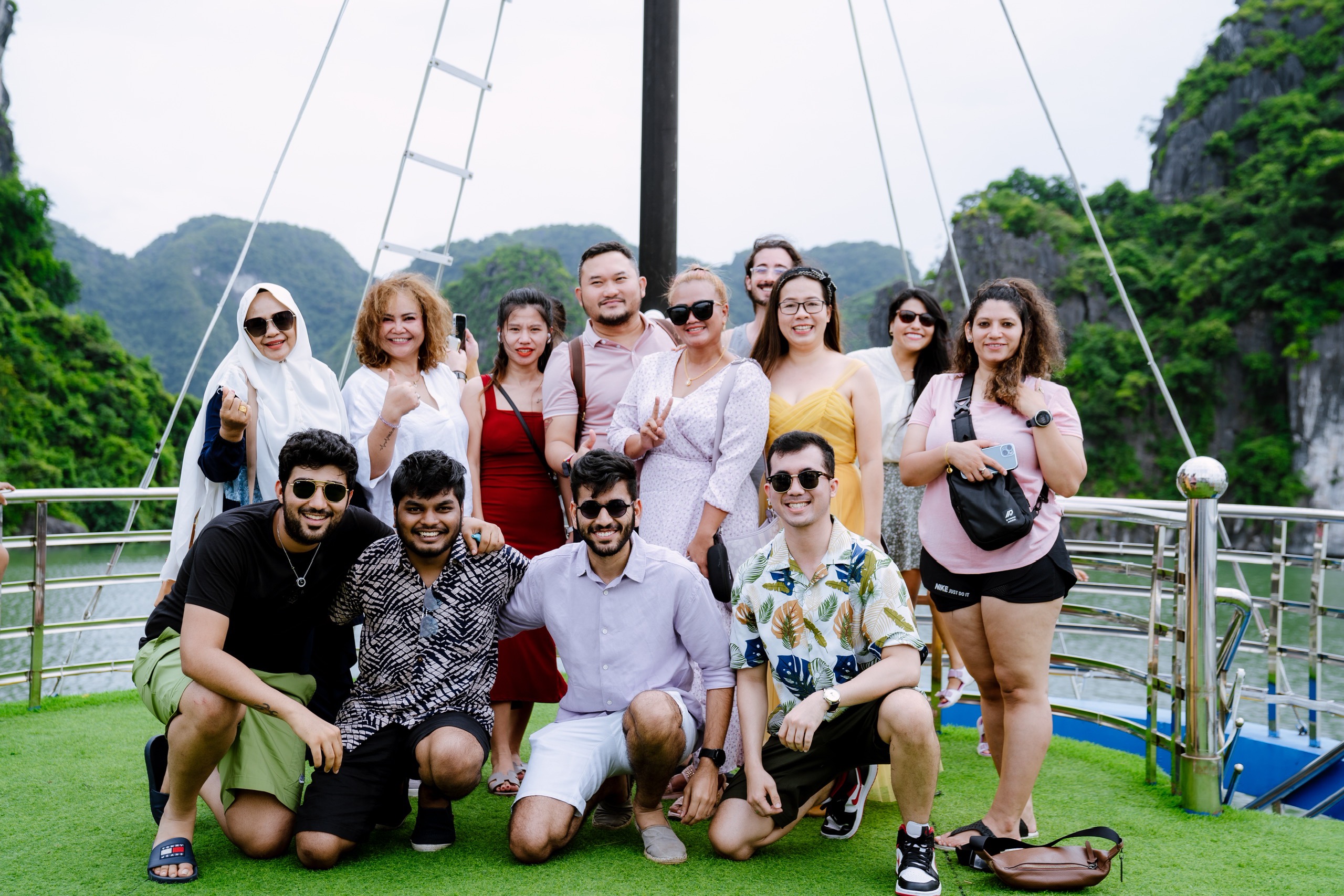 探索世界奇观之一——下龙湾的两天一夜之旅从河内出发,随后乘车前往下龙港。火车将途经嘎彩岛、狗石岛、丁香岛和五指岛等地,开启旅程。第一天,船上提供新鲜特色午餐。午餐后,游船停靠在Hon Bo,参观Sung Sot洞穴——下龙湾最美丽的洞穴之一。