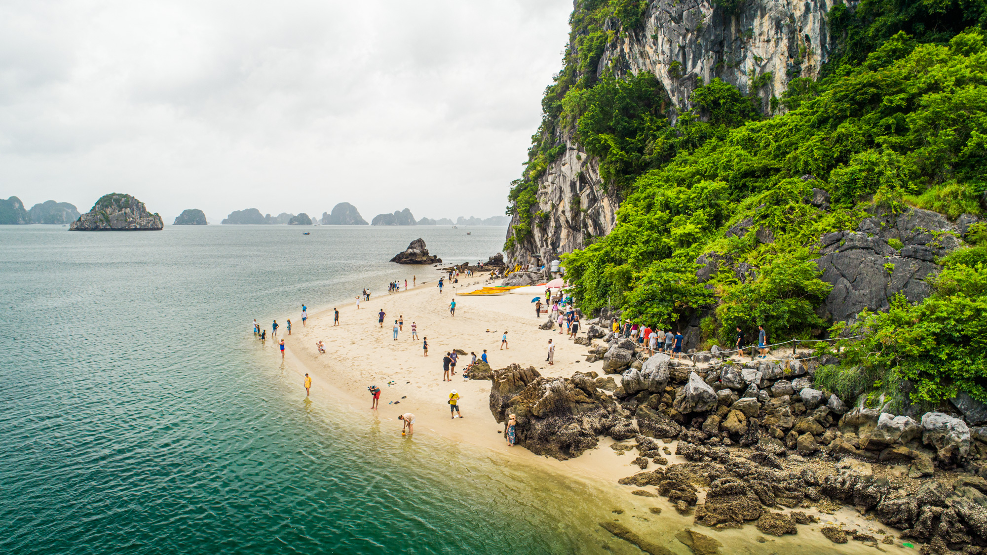 接下来,您将乘坐皮划艇或漂流前往Luon洞穴和Ti Top岛。在这里,您可以在Ti Top海滩畅游,或徒步登上Ti Top山顶,饱览整个下龙湾的景色。之后,您将返回大陆并入住酒店。