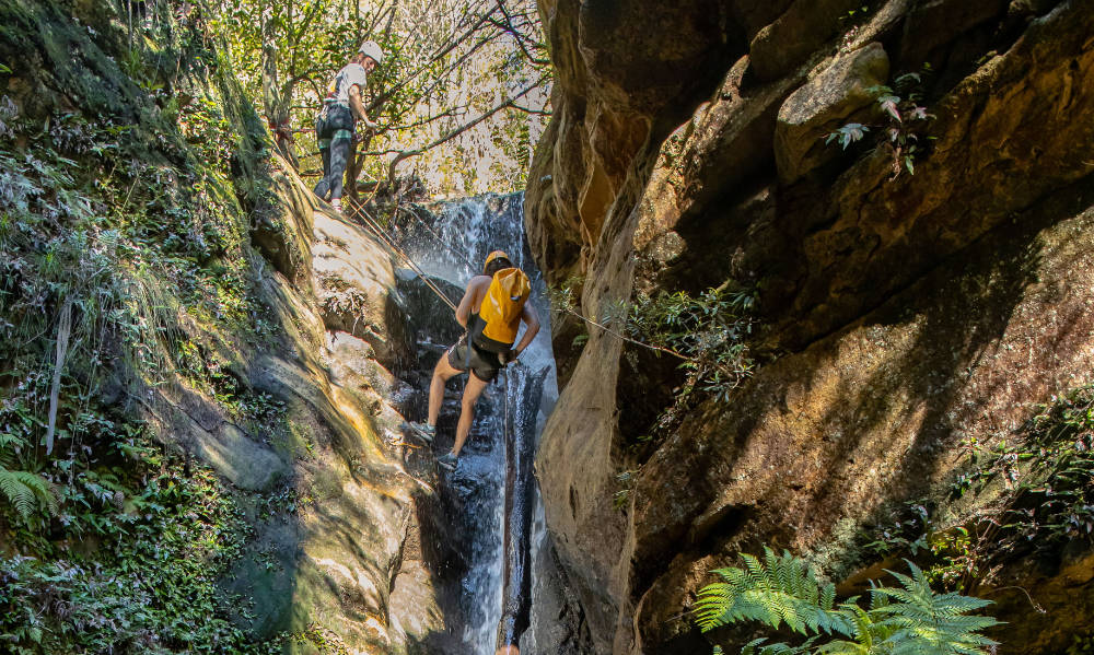 在世界遗产蓝山享受冬季溪降和绳索下降探险。
