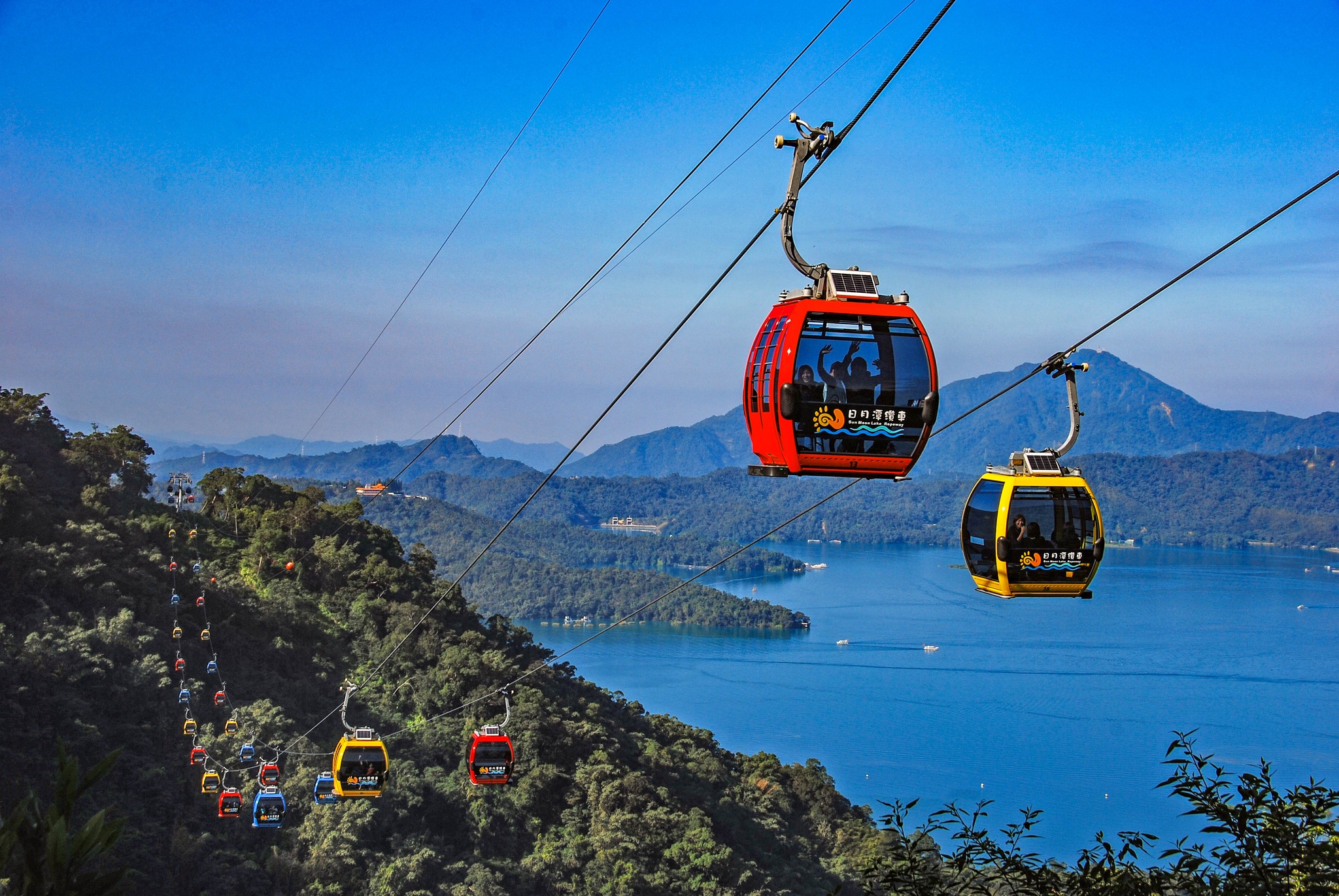 日月潭缆车全长约1877.15公尺,跨越海拔1044公尺的卜吉山,来回车程时间约16分钟,让您轻松悠游日月潭,能够俯瞰日月潭360度的湖光山色