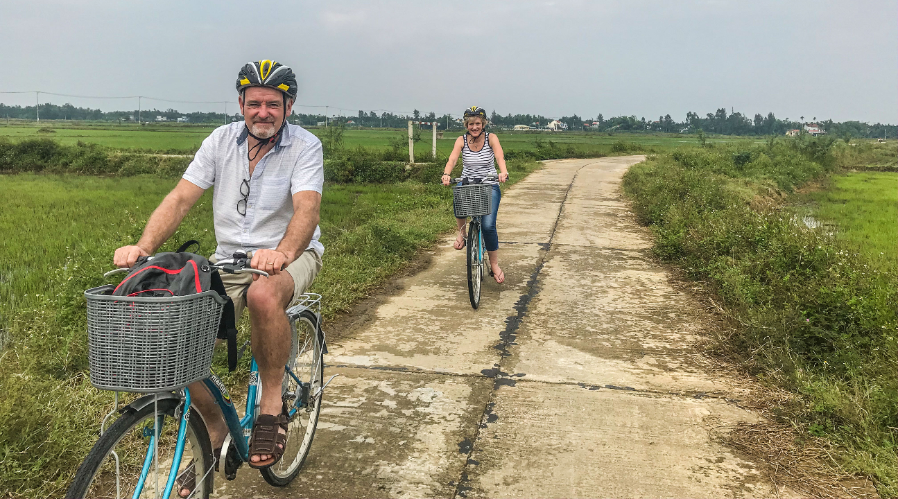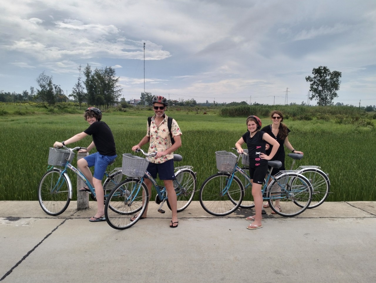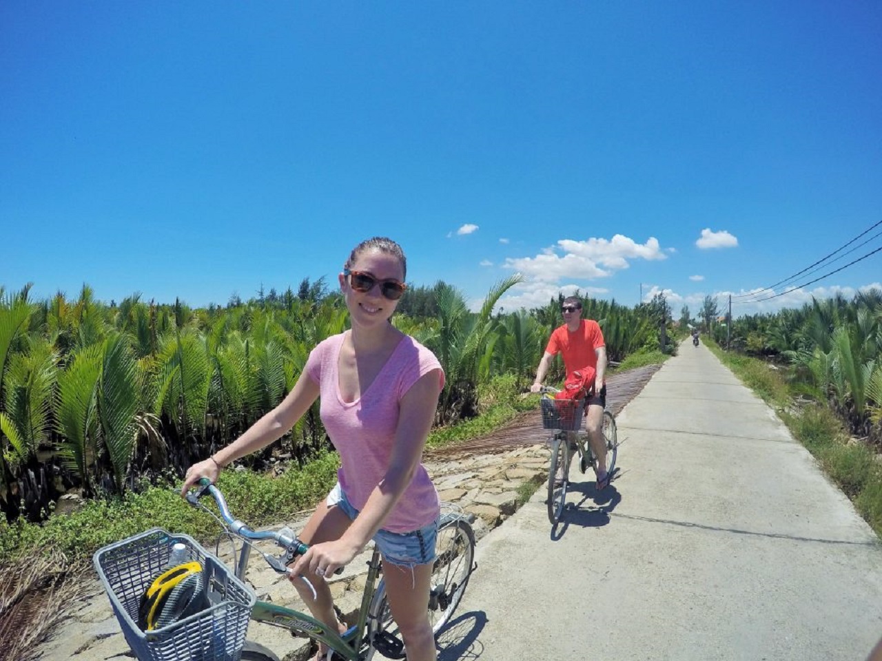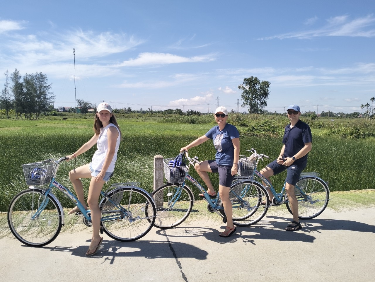 -14:30/15:00 – 骑着自行车从酒店出发,过河前往锦金岛,享受轻松的自行车之旅,穿过稻田、椰林和当地传统手工艺村。这条路线带我们到达维荣(Duy Vinh)——一个隐密的村庄,以莎草床垫编织而闻名。
