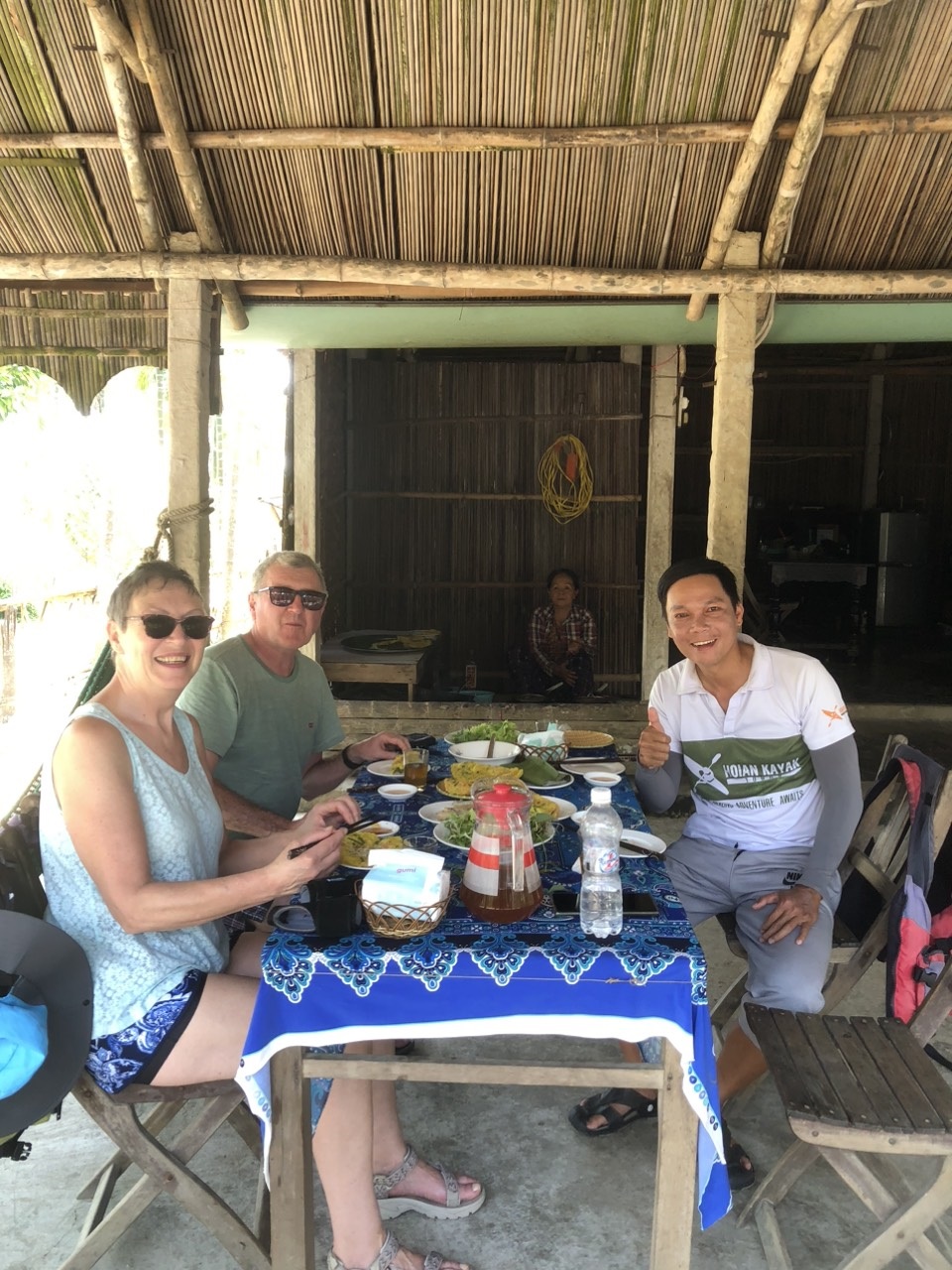 骑行约 1.5 小时后,我们将到达一个村庄码头,在那里您会发现一艘传统的船等待带您返回古镇,这是欣赏河上日落和古建筑的好时机。