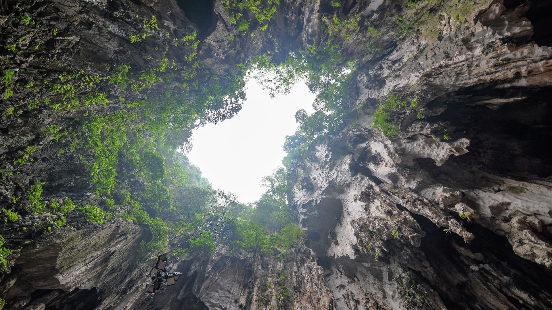 在黑暗中探索洞穴,内部建造的各种迷人结构照亮了洞穴