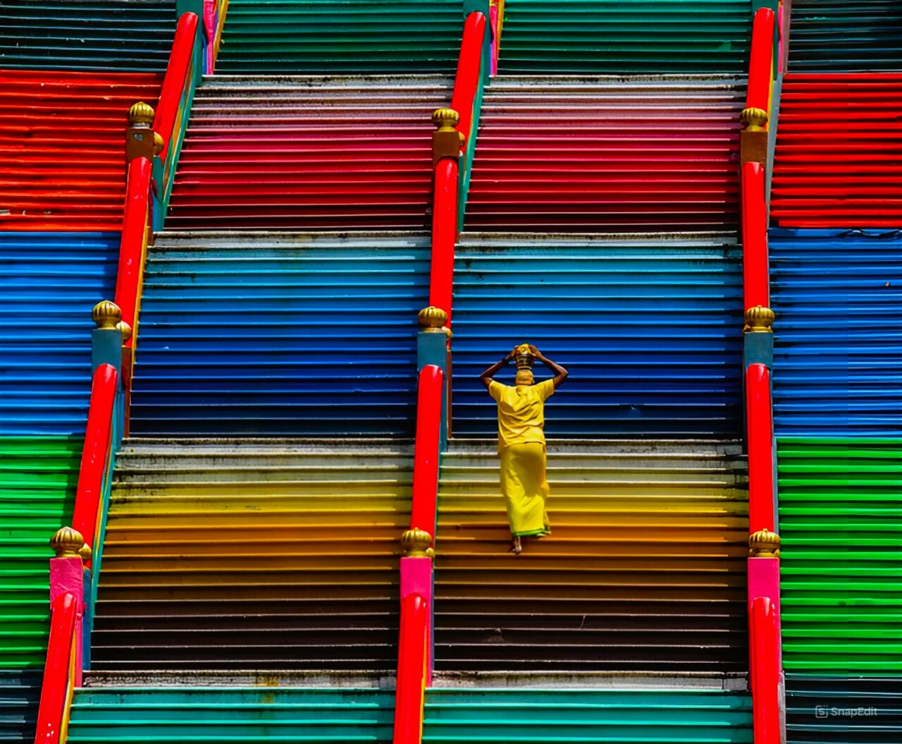 在热门的值得拍照的景点拍照,例如社交媒体动态中的彩色台阶