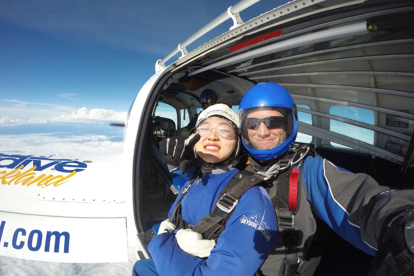 一次享受奥克兰美景及双人高空跳伞乐趣(照片提供:Qing Fang)
