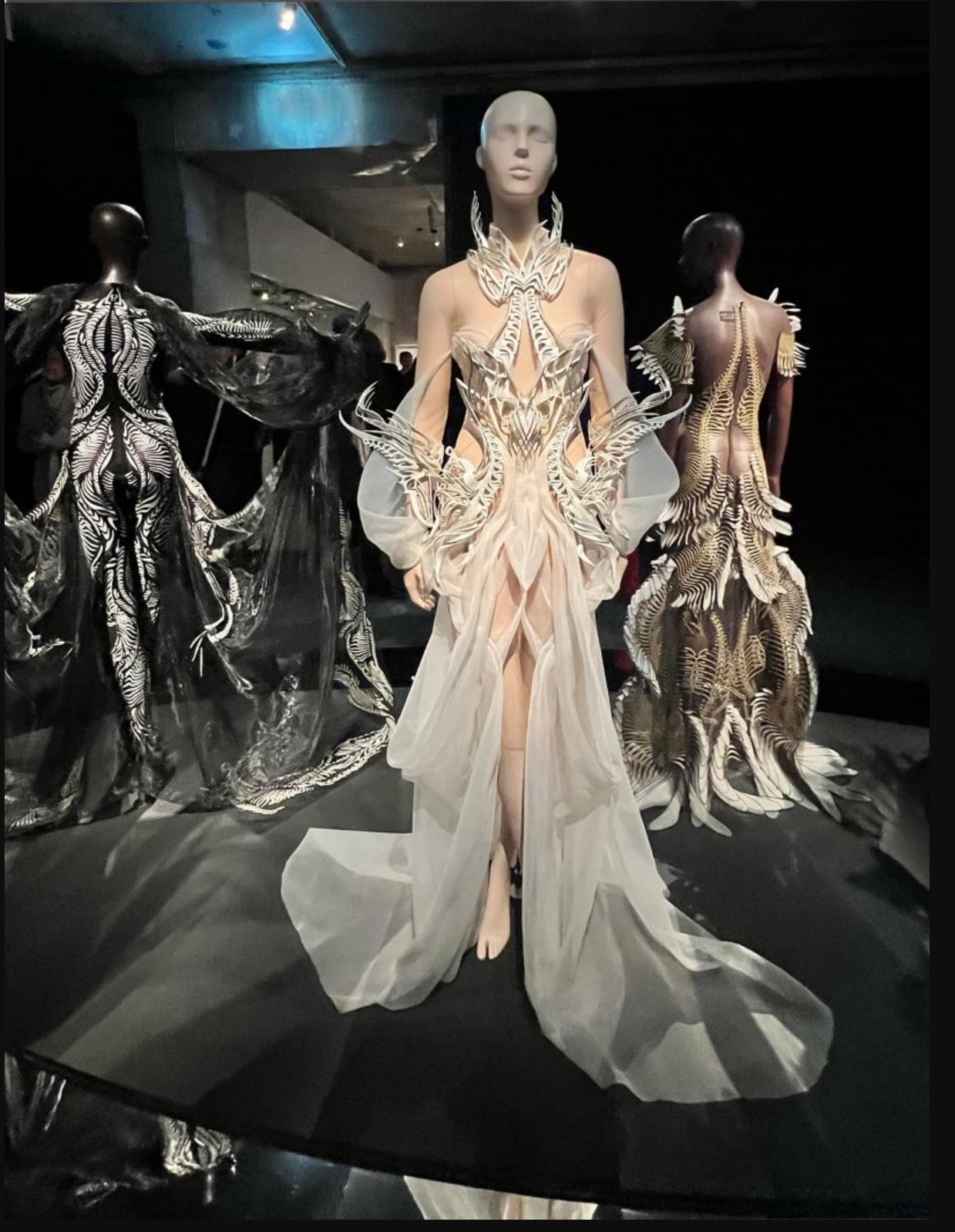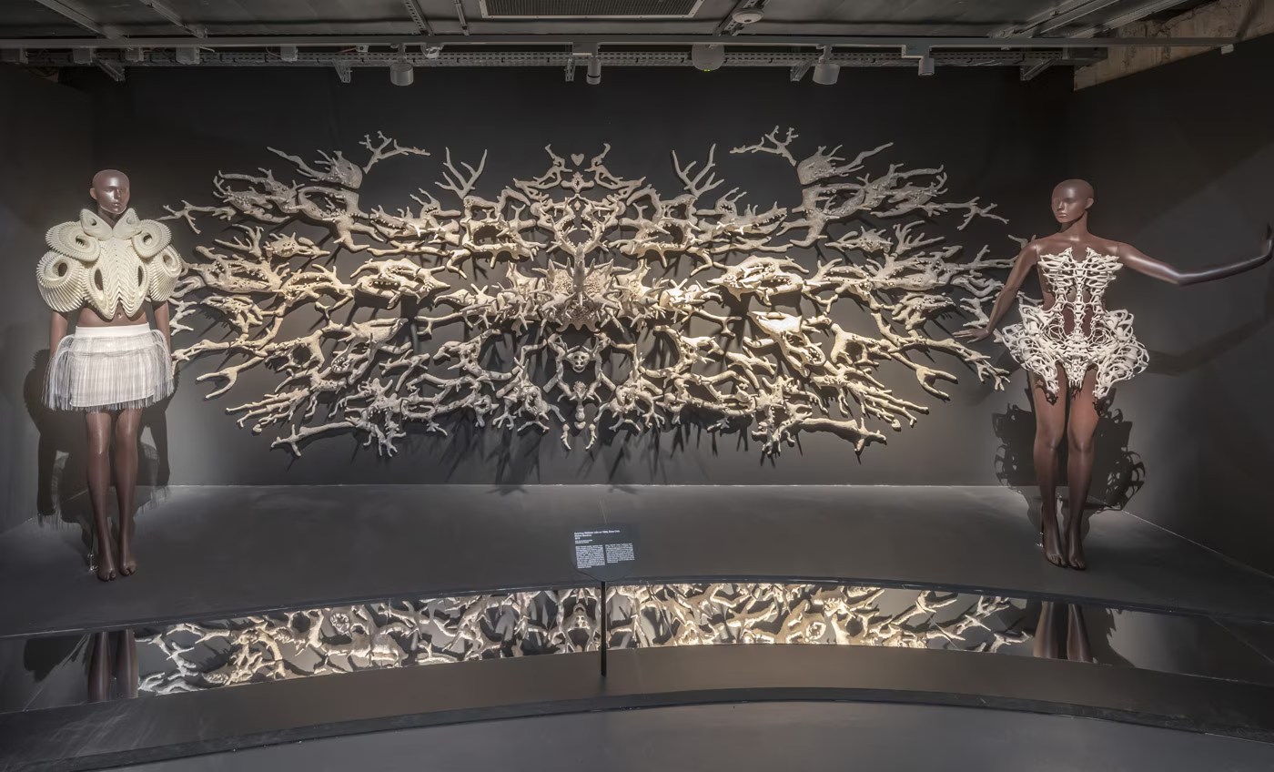 **巴黎装饰艺术博物馆与新加坡艺术科学博物馆联合呈现:感知雕塑展** 是由法国巴黎装饰艺术博物馆与新加坡艺术科学博物馆联合举办的展览,基于巴黎装饰艺术博物馆的原创展览设计。 展示了这位极具远见卓识的时装设计师如何运用科技,将传统与创新制作工艺巧妙融合,引领一代潮流。 Iris van Herpen 的一百多件高级定制服装作品与当代艺术作品对话,艺术家包括 Collectif Mé、Wim Delvoye、Kate MccGwire、Damien Jalet、名和晃平、Casey Curran、Rogan Brown、Jacques Rougerie、任日、Ferruccio Laviani、Philip Beesley 和 Tomáš Libertíny,此外还有来自自然科学领域的物品,例如骨骼和化石,从而与历史文物产生独特的共鸣。 本次展览由策展人克洛伊·皮蒂奥 (Cloé Pitiot) 和助理策展人路易丝·柯蒂斯 (Louise Curtis) 共同策划。