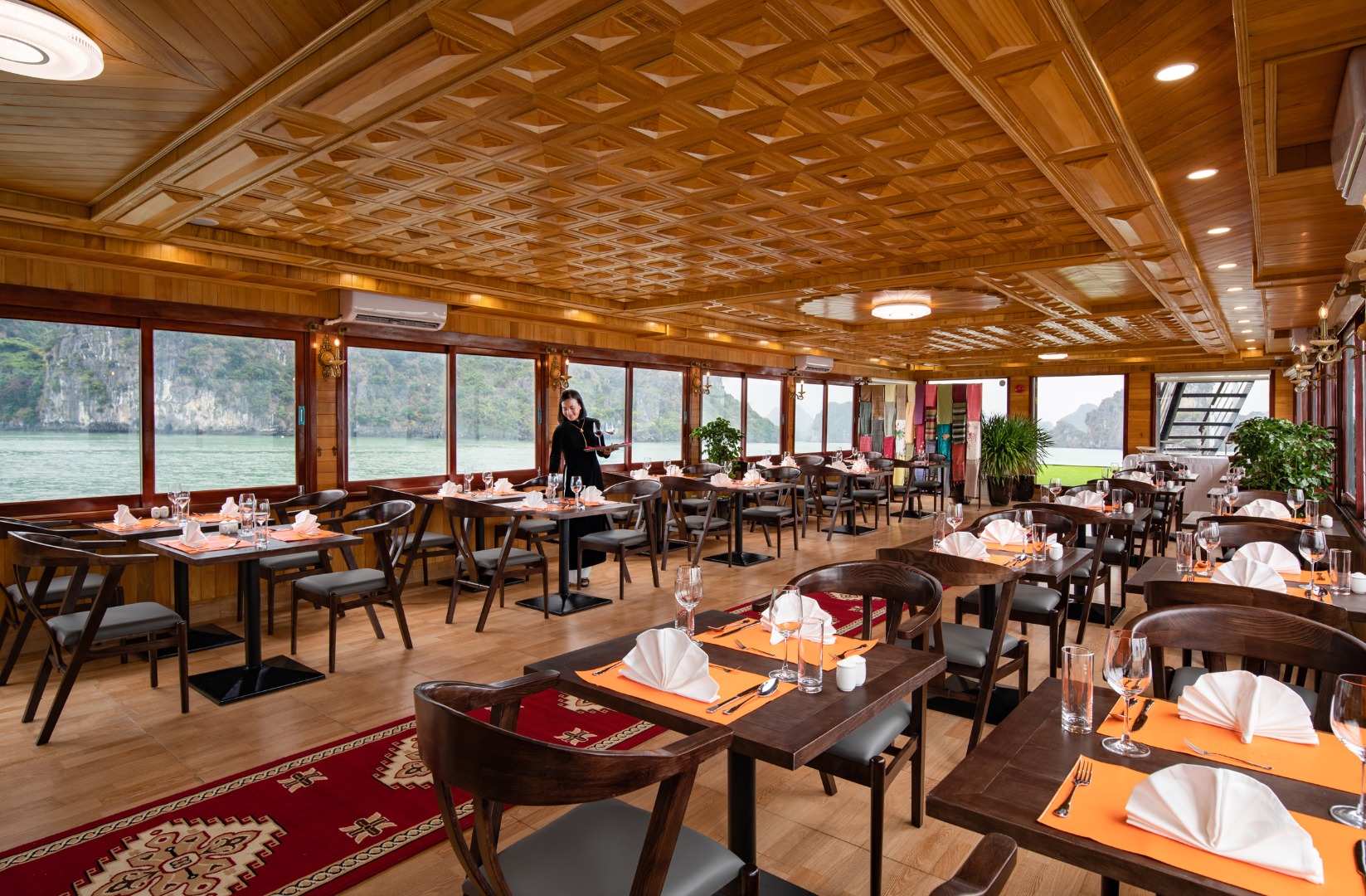 想象一下,坐在舒适的沙发上,在传统的空间里,被自然舒适的木板墙覆盖,在游轮航行时啜饮一杯葡萄酒,穿过岩石岛屿,在日光浴平台上放松,从上方欣赏海湾的全景,这是多么美妙的事情。Serenity Premium Cruises 是一款优质产品,自信地为您带来难忘的体验