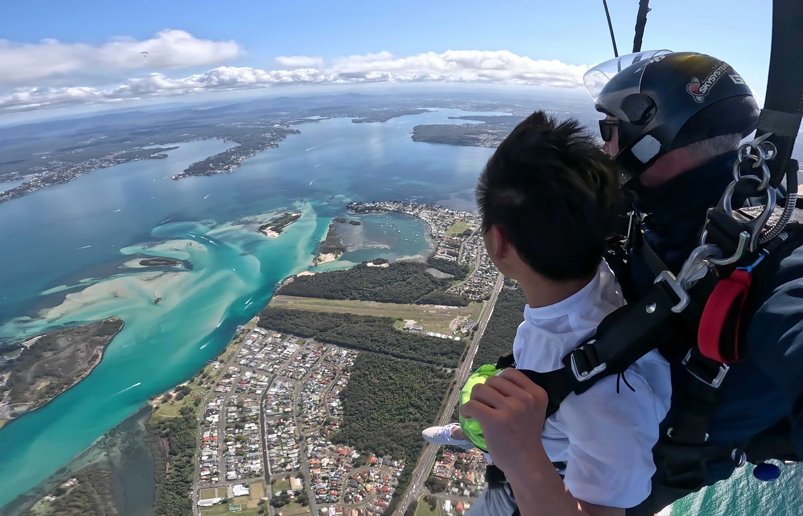 你准备好体验肾上腺素飙升的刺激了吗?你选择了一个地球上最棒的地方来进行跳伞!在前往跳伞中心时,先平复一下你的心情。到达后,你会遇到你的跳伞支持团队,包括你的双人跳伞教练和安全官,他们会训练你所有的安全程序,并回答你关于跳伞的任何问题。一旦你了解了所有信息,穿上你的装备,然后进行一次令人兴奋的飞行,最高可达15,000英尺。你的双人跳伞教练会将你的安全带系在一起,并照顾好所有技术细节,这样你就可以享受你的体验了。当门打开,你感到风吹进来时,不要理会你肚子里的蝴蝶。 纵身一跃,在空中自由落体60秒,体验时速高达200公里的刺激!你的双人跳伞教练会负责打开降落伞,万一发生紧急情况,所有降落伞都配备了最新的AAD技术,可在预设高度自动打开。在空中漂浮5 - 7分钟,鸟瞰纽卡斯尔、麦觉理湖和海岸线,然后安全着陆。这是一次难忘的体验,你永远不会忘记!