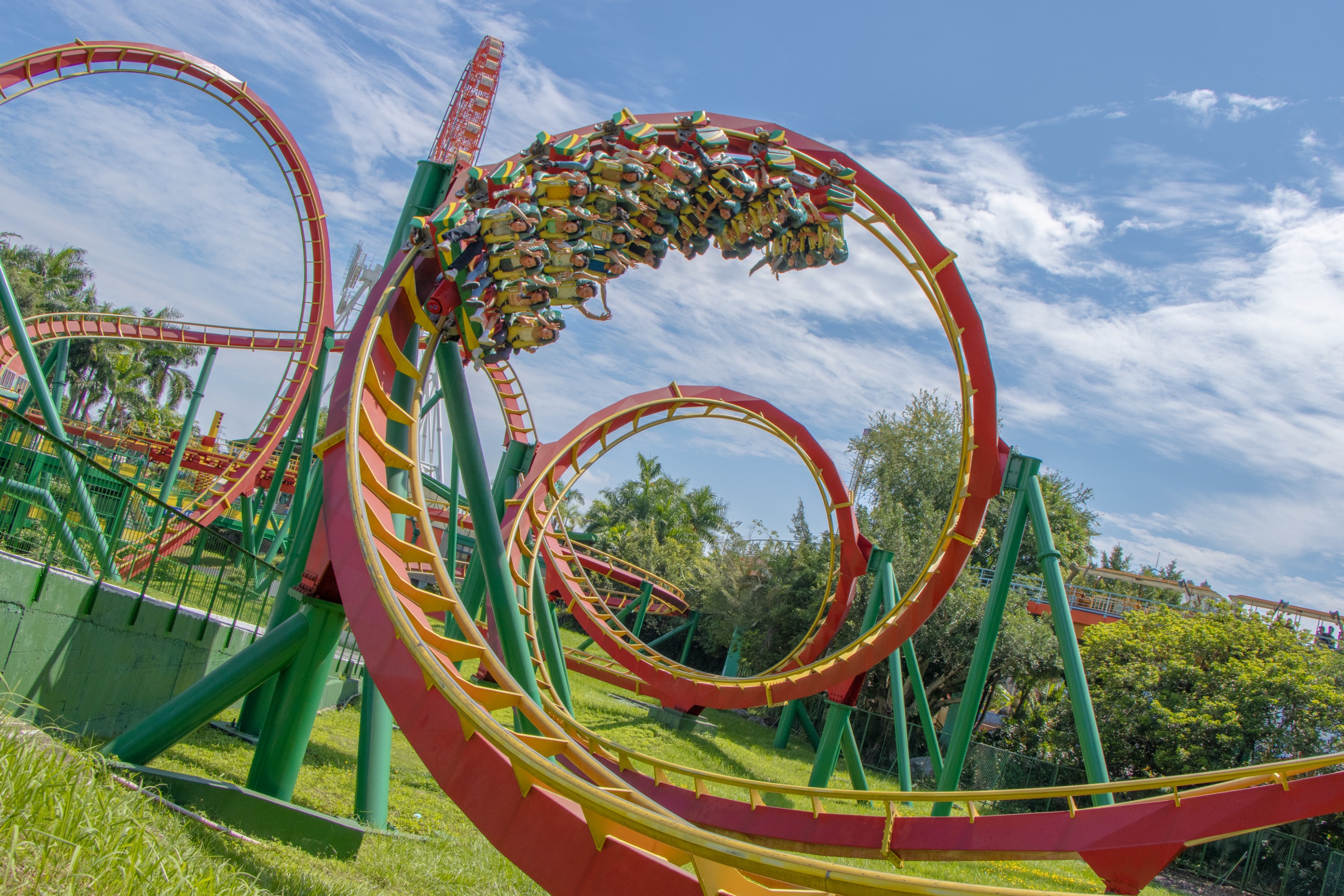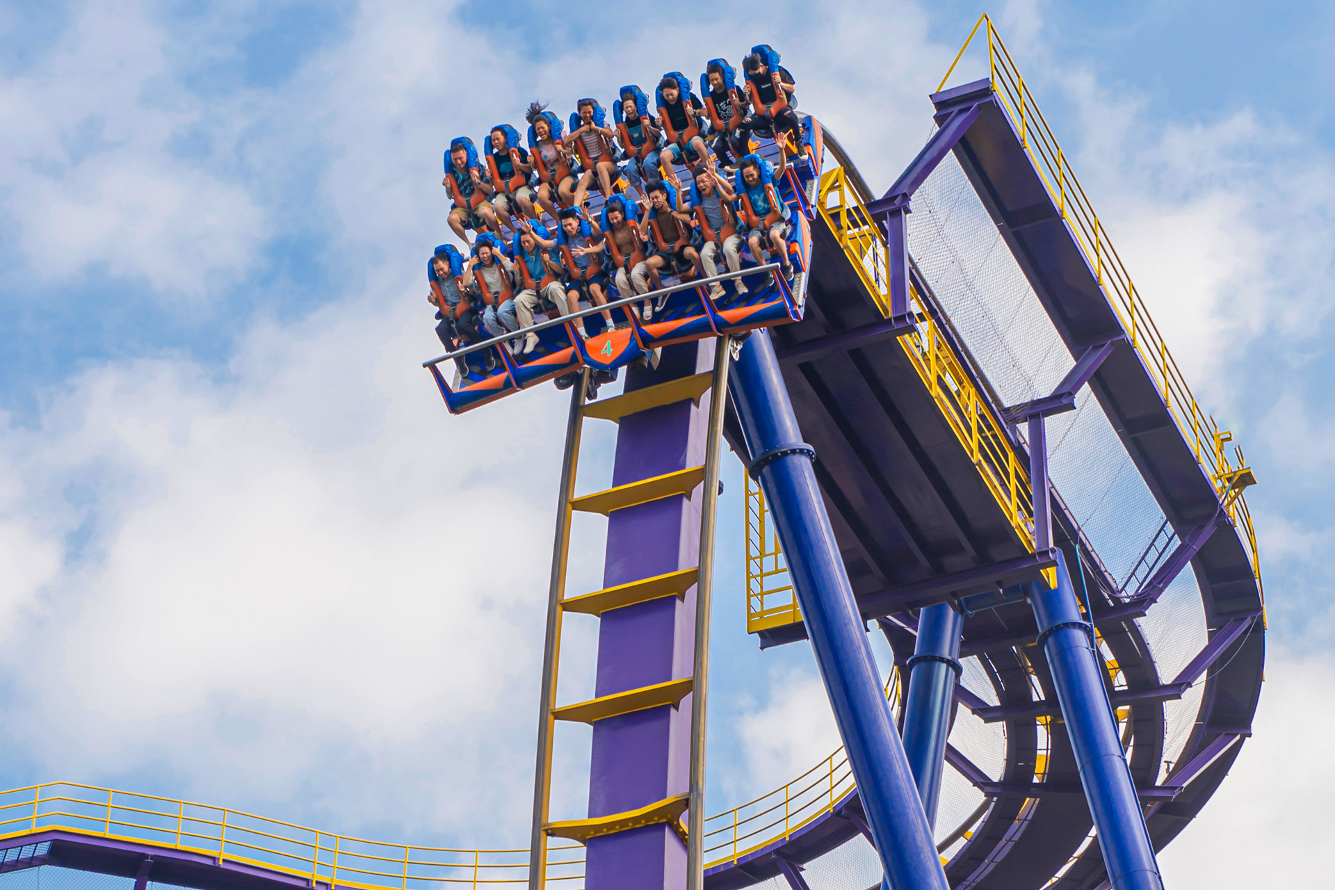 【冲疯飞车】亚洲首度引进 360度大回转『无底盘式』云霄飞车,轨道全长816 公尺,高度40公尺。以时速86 公里疯狂俯冲!