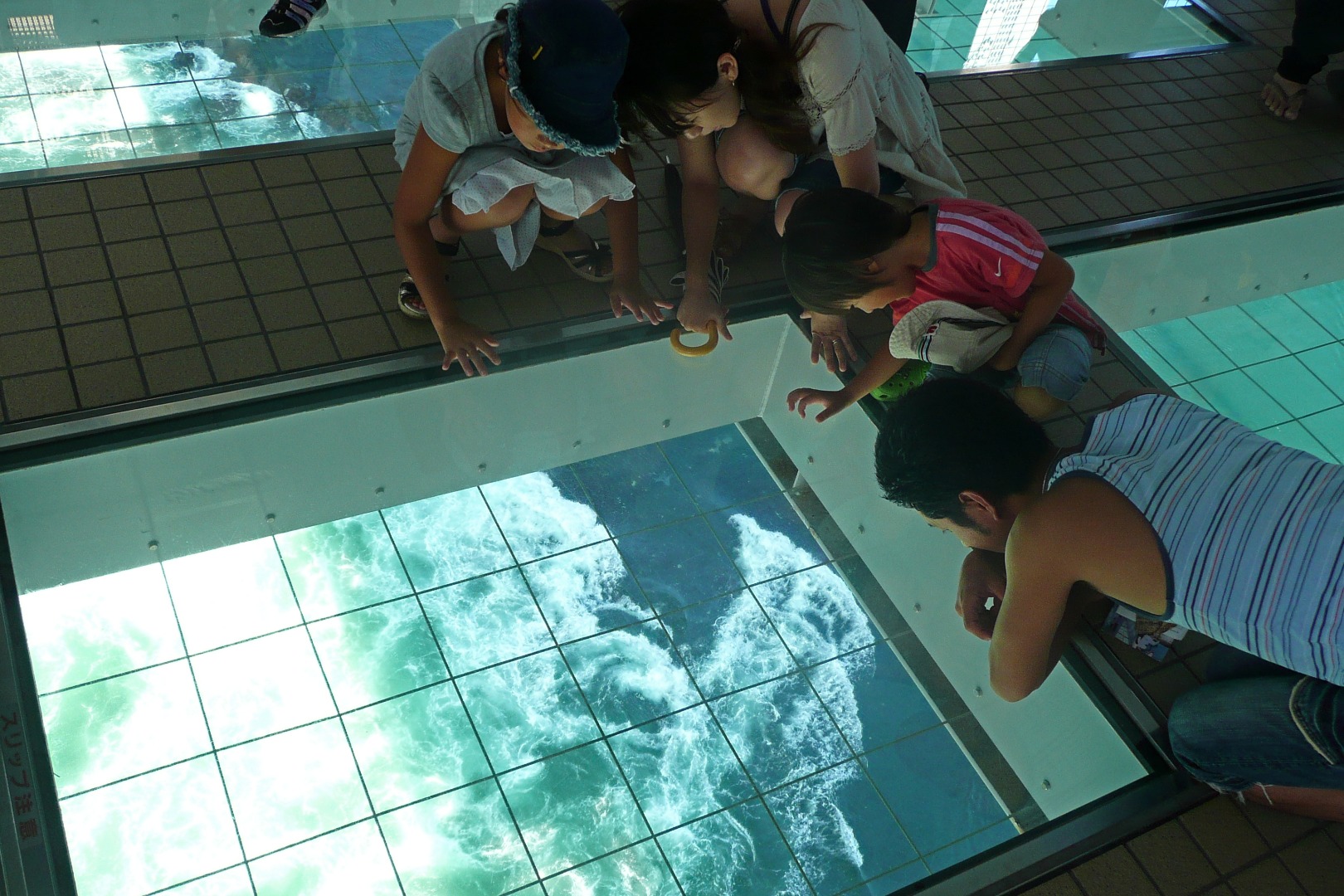 战胜恐惧,站在玻璃地板上,从上方探索漩涡