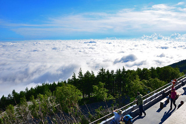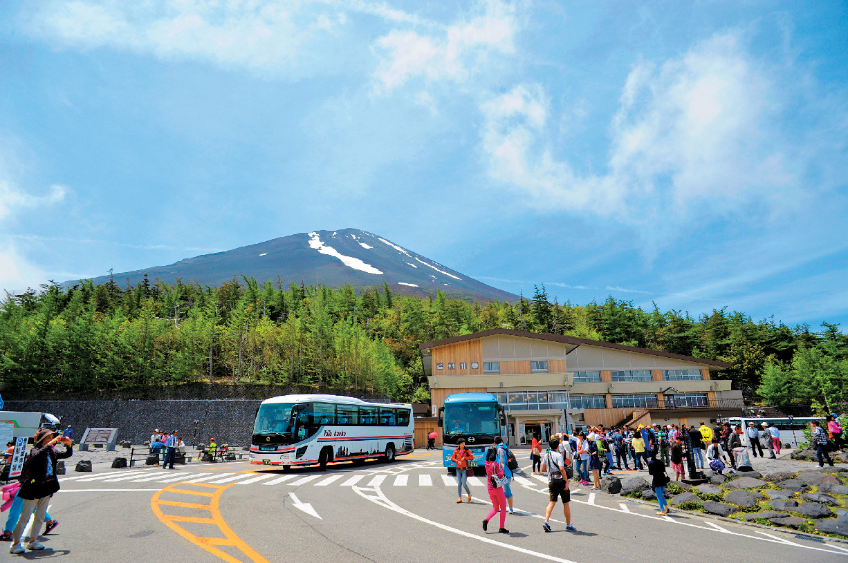 富士山共有10个站,车辆可以到达海拔2305公尺的第五站!不用攀登,就能到达富士山的中途。除了观光风景,还有许多小商店供您
