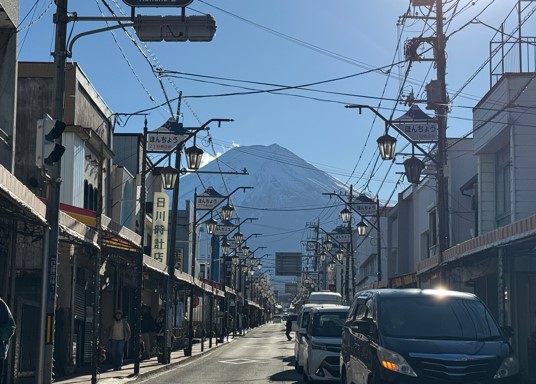 体验结束后,还可以在店外拍照。湖水倒映着富士山,平静而壮观!