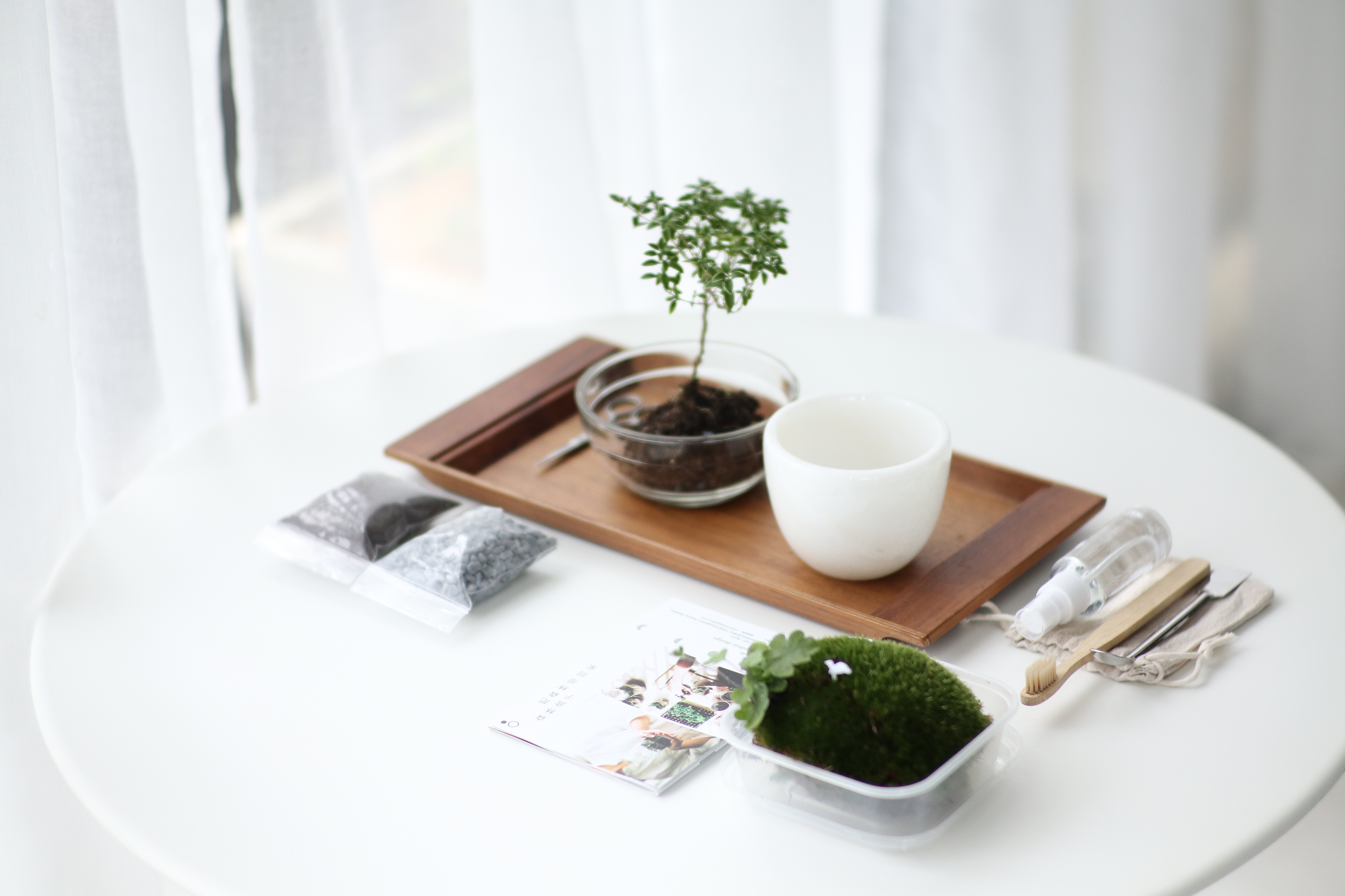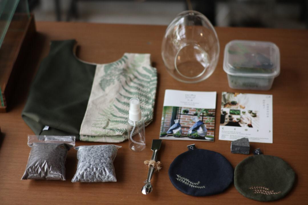 DIY 套件包含种植材料、工具和玻璃容器,供您打造属于自己的独特微型森林
