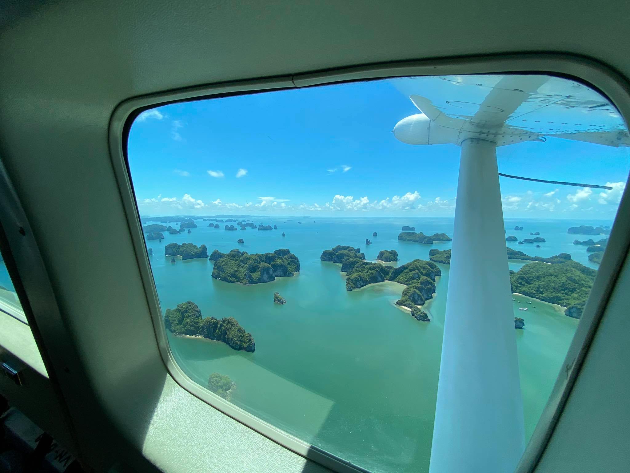 我们在团洲码头的水上起飞和降落,在 25 分钟的观光飞行中展示了联合国教科文组织世界遗产下龙湾的亮点,提供了与游轮完全不同的视角。从空中俯瞰,许多岛屿就像山脉一样,是“下龙”的化身,意思是“龙下凡”。