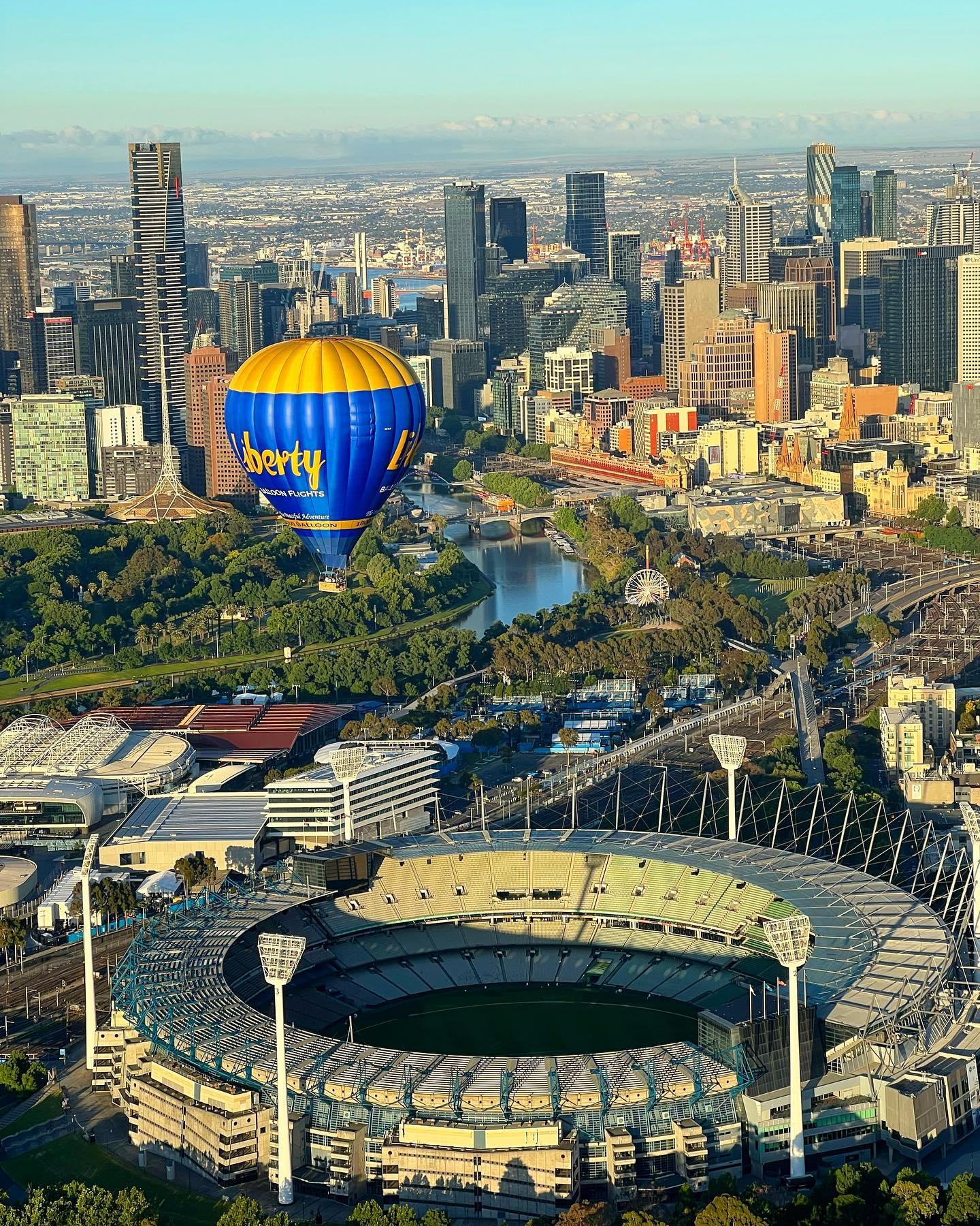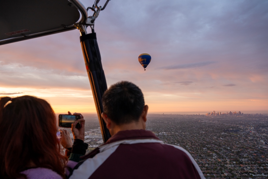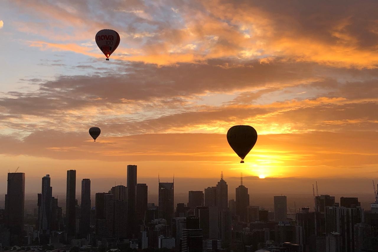 在墨尔本迷人的城市天际线上空翱翔,乘坐热气球迎接第一缕阳光