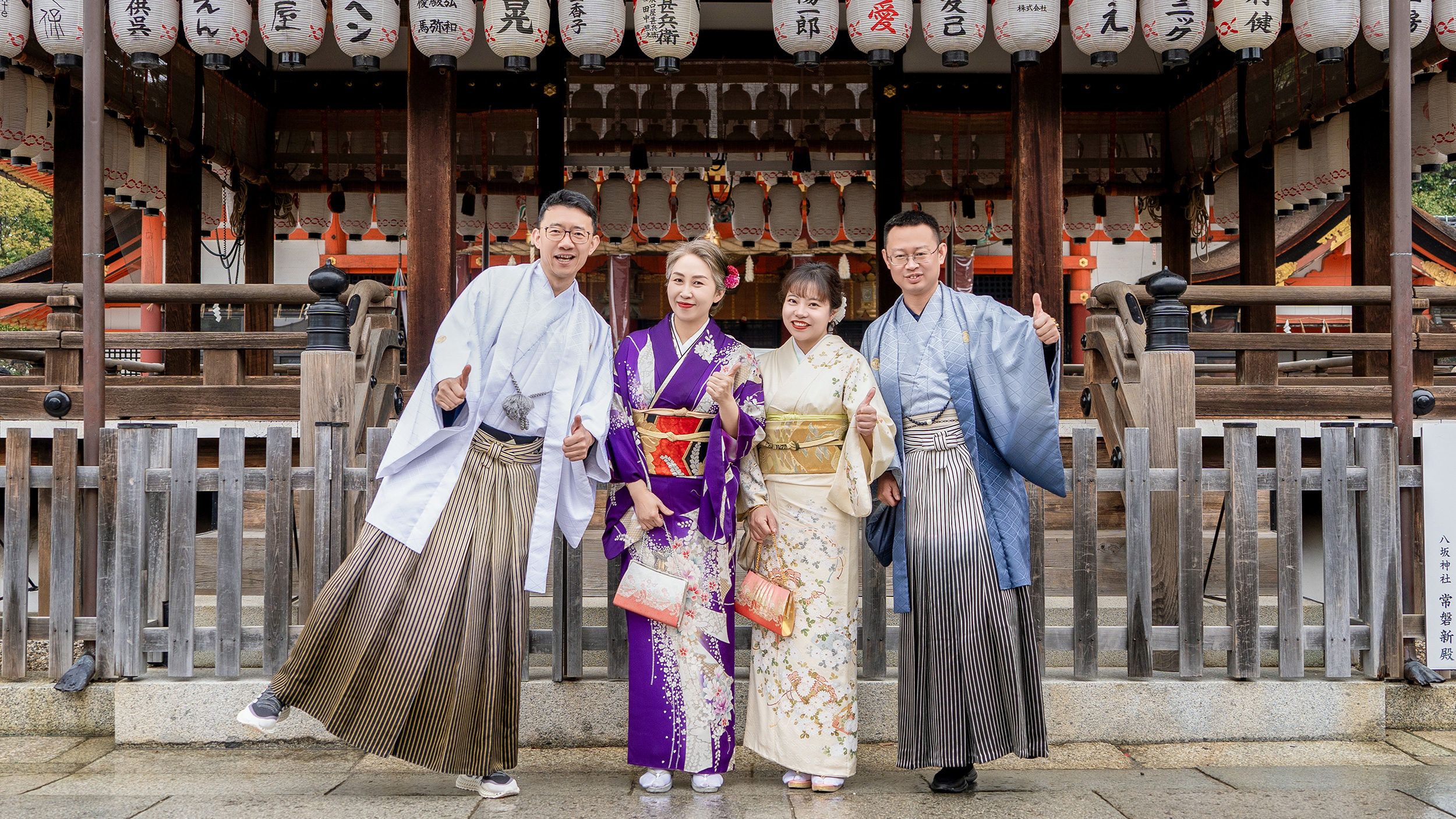 京都以其古老的日本文化而闻名,而东山区清水寺一带则是古街和艺伎文化的聚集地。您可以穿上和服,漫步在古色古香的街道上,充分沉浸在当地的传统文化中。抵达租赁店后,这里提供英语、中文、日语和韩语的多语言服务人员将为您服务。冈本织物店提供专业的服务,让您轻松穿上和服。您可以在当天17:00之前归还和服,或者支付少量费用将其延长至第二天,体验京都之夜。