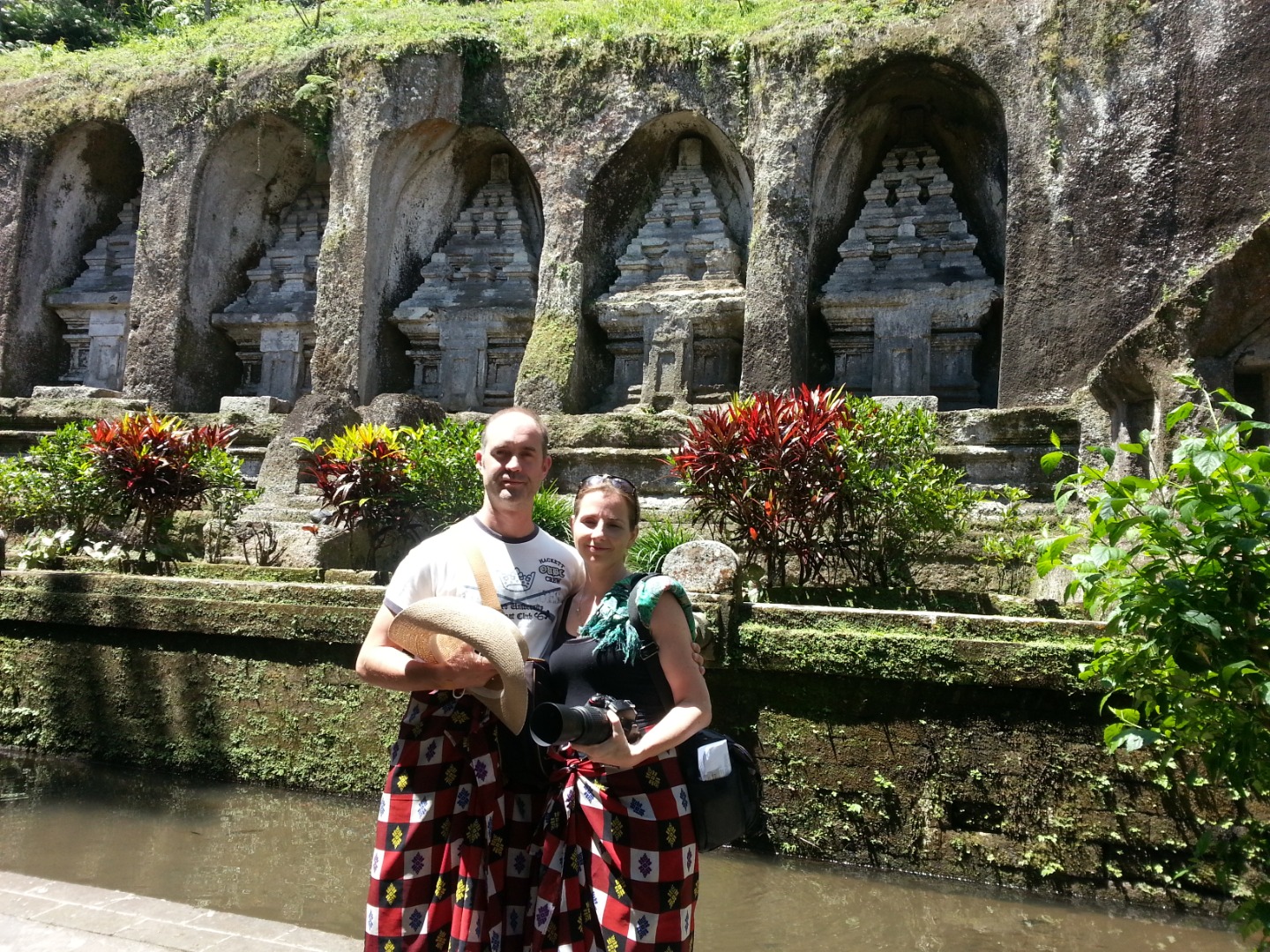 Pakerisan 河两岸的悬崖上雕刻着神社,由一块石头连接