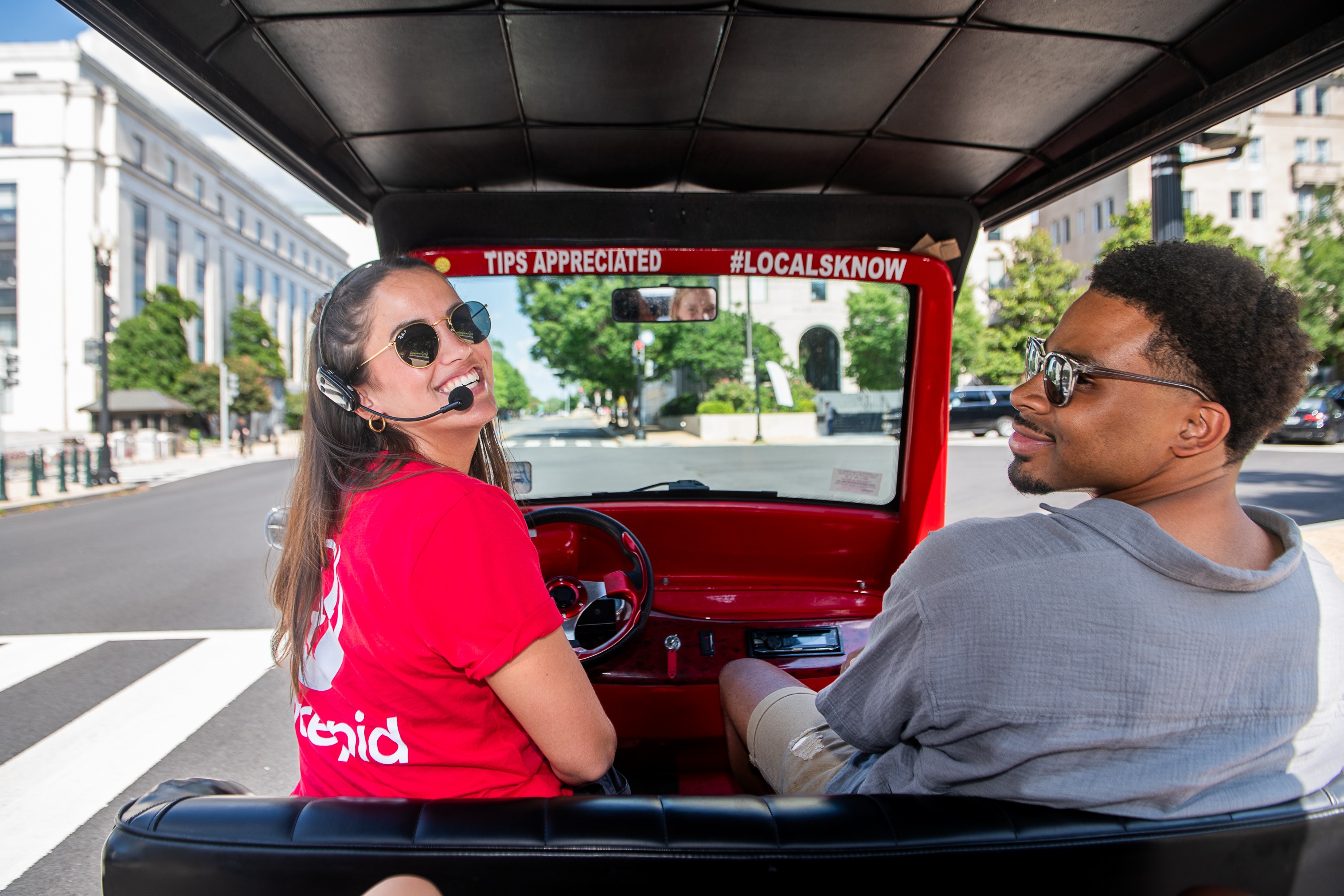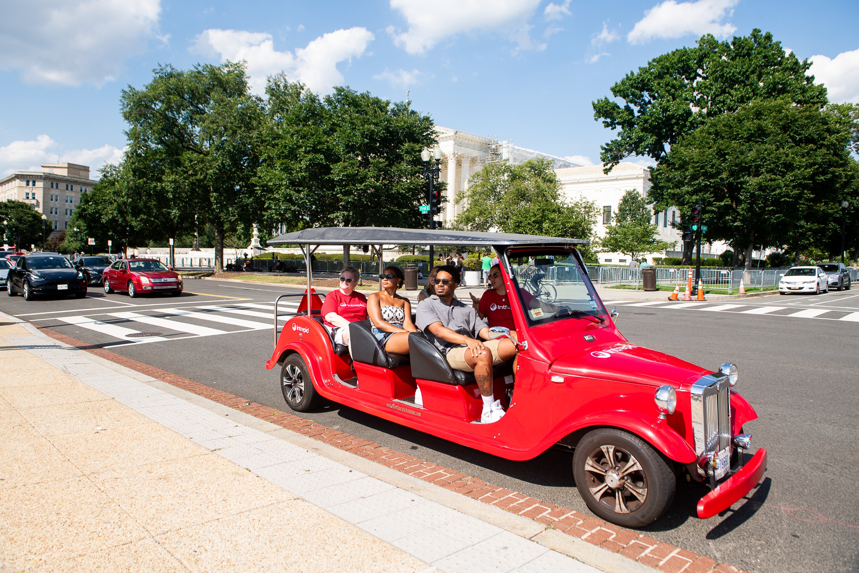 避开拥挤的人行道,坐上我们的全电动红色敞篷跑车,在当地人的带领下游览美国首都。您将首先游览史密森尼博物馆,然后经过华盛顿纪念碑、大屠杀博物馆和雕刻和印刷局,然后前往美丽的潮汐湖,在那里您可以了解水绿洲和杰斐逊纪念堂背后的故事。我们将给您时间步行探索其中一些纪念碑。从这里出发,我们将沿着风景秀丽的波托马克河航行,欣赏阿灵顿公墓的景色,然后参观第一次世界大战和第二次世界大战纪念碑。继续您的美国历史之旅,经过白宫。最后,饱览国会山的建筑,了解它们背后的历史。