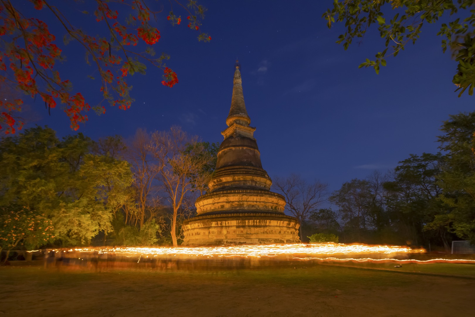 登上 309 级台阶,欣赏清迈无与伦比的夜景,还有机会在金塔观看传统的僧侣仪式。返回酒店,结束宁静的寺庙体验,结束一天的寺庙探索和风景如画的日落。