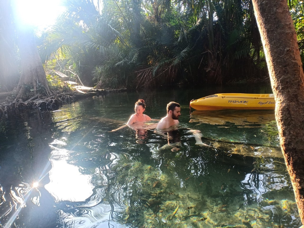 在令人惊叹的美丽大自然中划独木舟,并在天然清新的游泳池中游泳