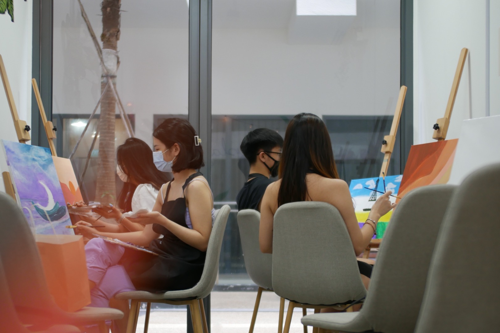 在 Hueplay Studio 享受在帆布和手提袋上自由形式和指导绘画约会,这是一个专门用于艺术逃逸、分享回忆和美好时光的空间。在美妙的音乐、饮料、小吃和友好的工作人员的陪伴下,玩转大量的颜色和工具!