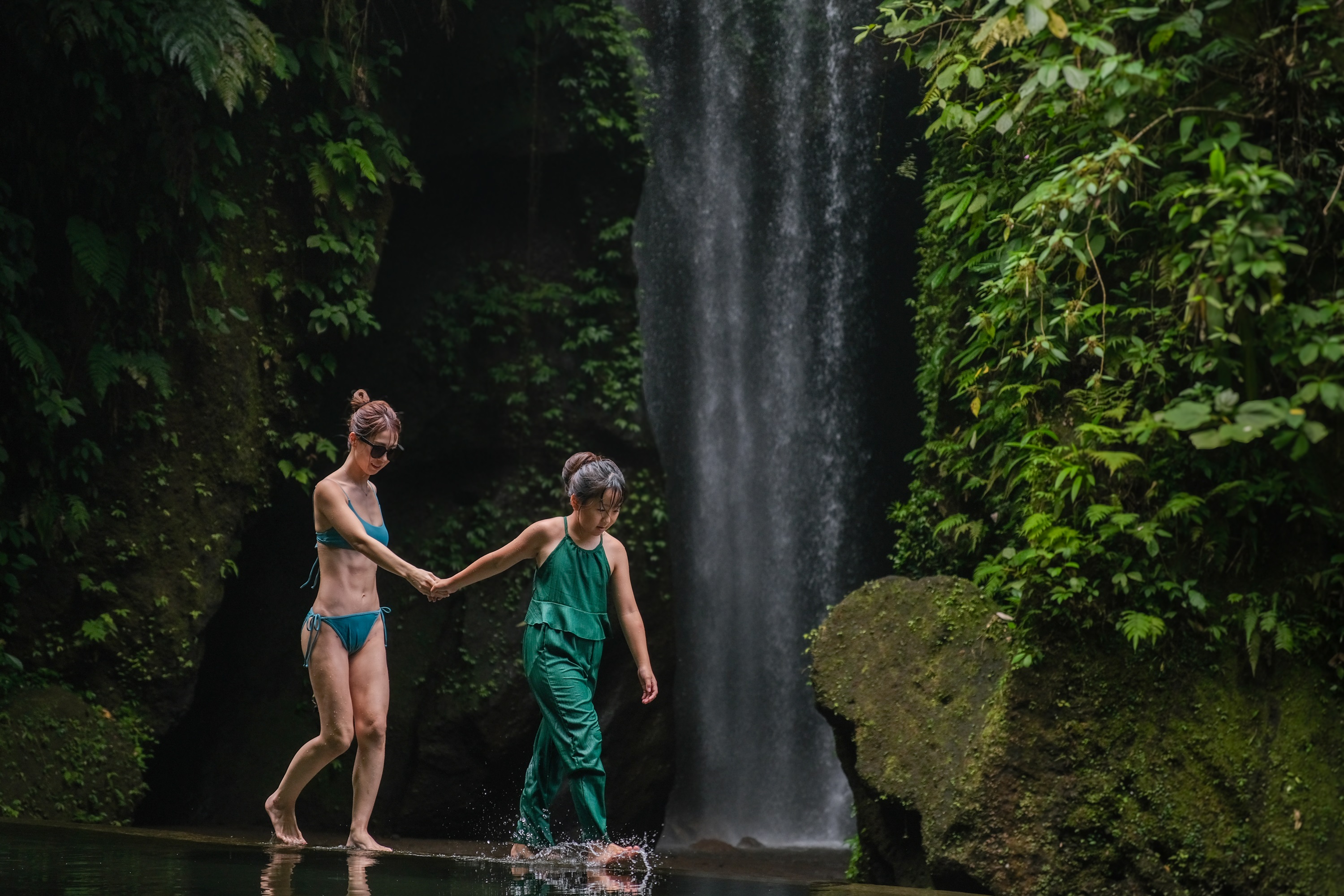 在我们为您拍照的同时,在天然泳池中畅游,欣赏瀑布美景
