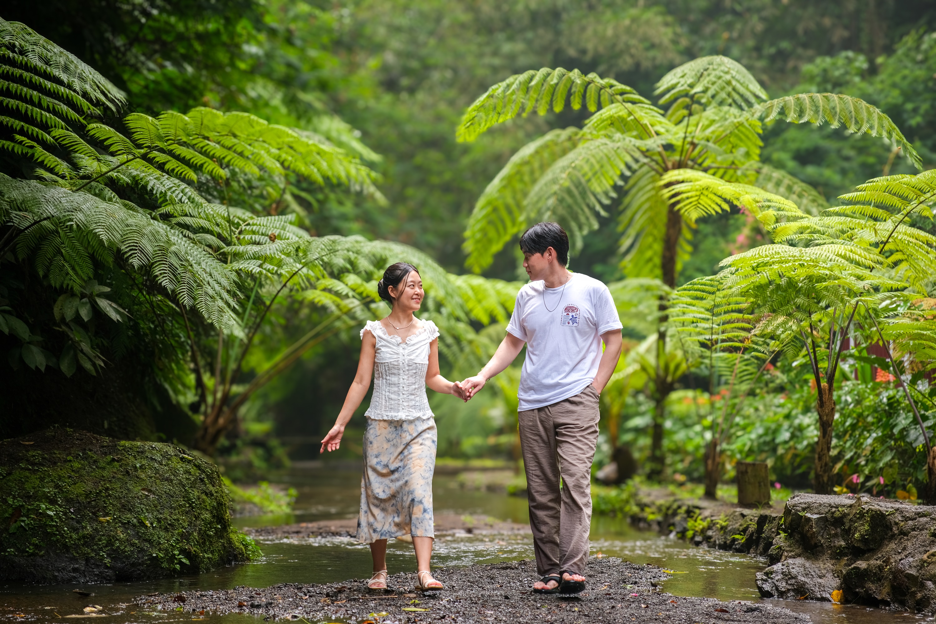 与心爱的人一起欣赏美丽的梯田