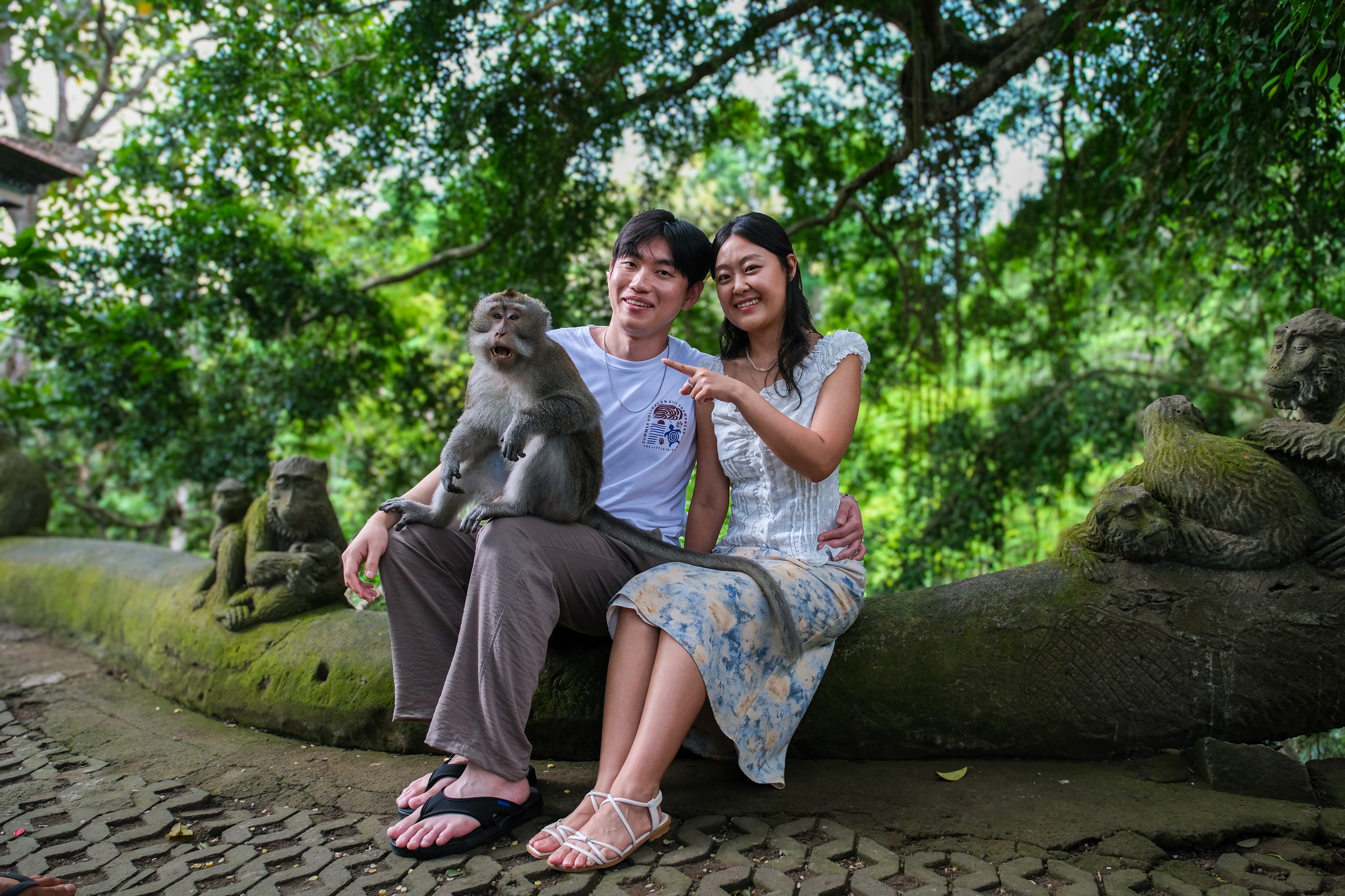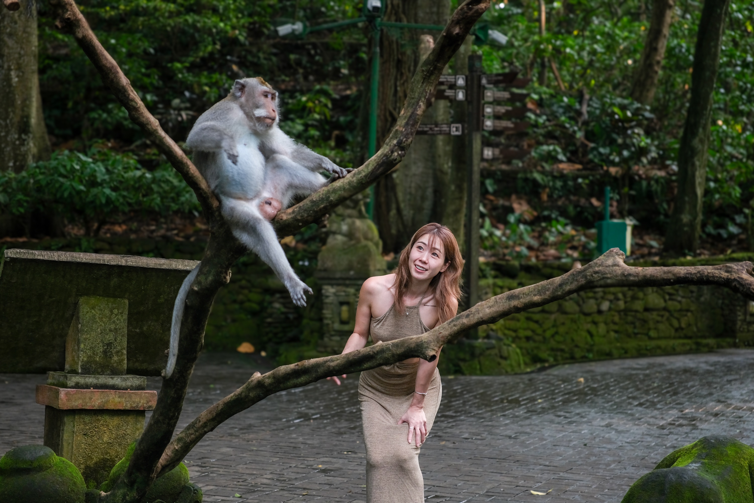 在猴子森林里和猴子合影