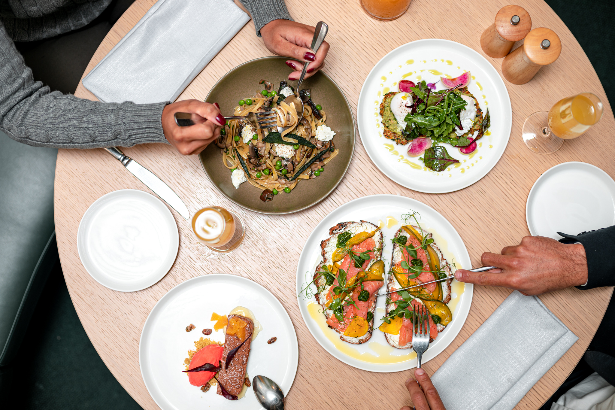 * 扁面条、豌豆、野蘑菇、Cavolo Nero、意大利乳清干酪、松露油