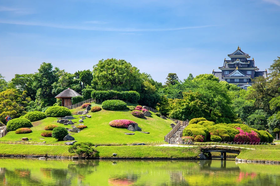 * **冈山**:'日本三大名园'的特别国宝之一,以冈山后乐园和冈山城而闻名