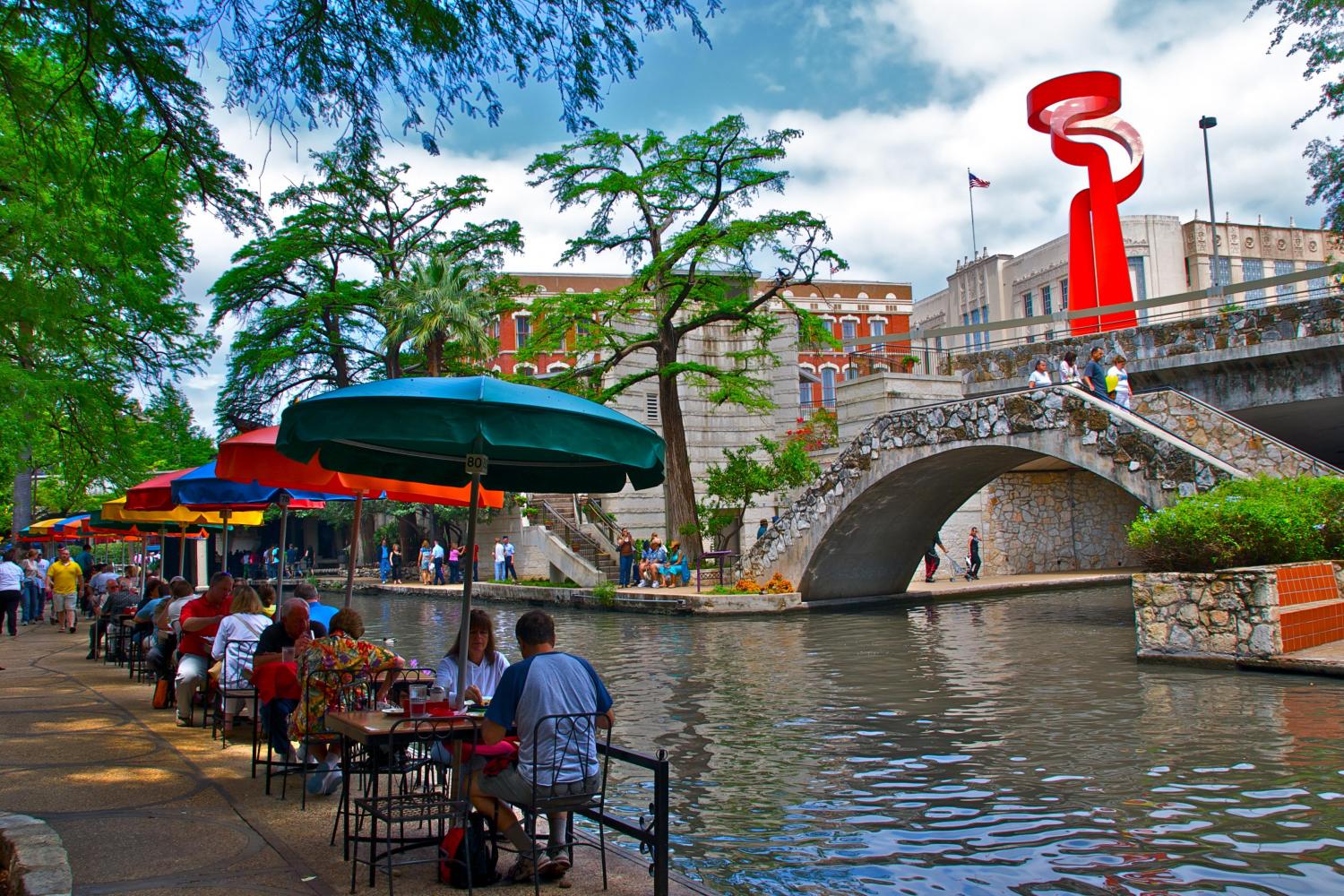 在宁静的 Hemisfair 公园内欣赏美丽的绿地和文化遗址