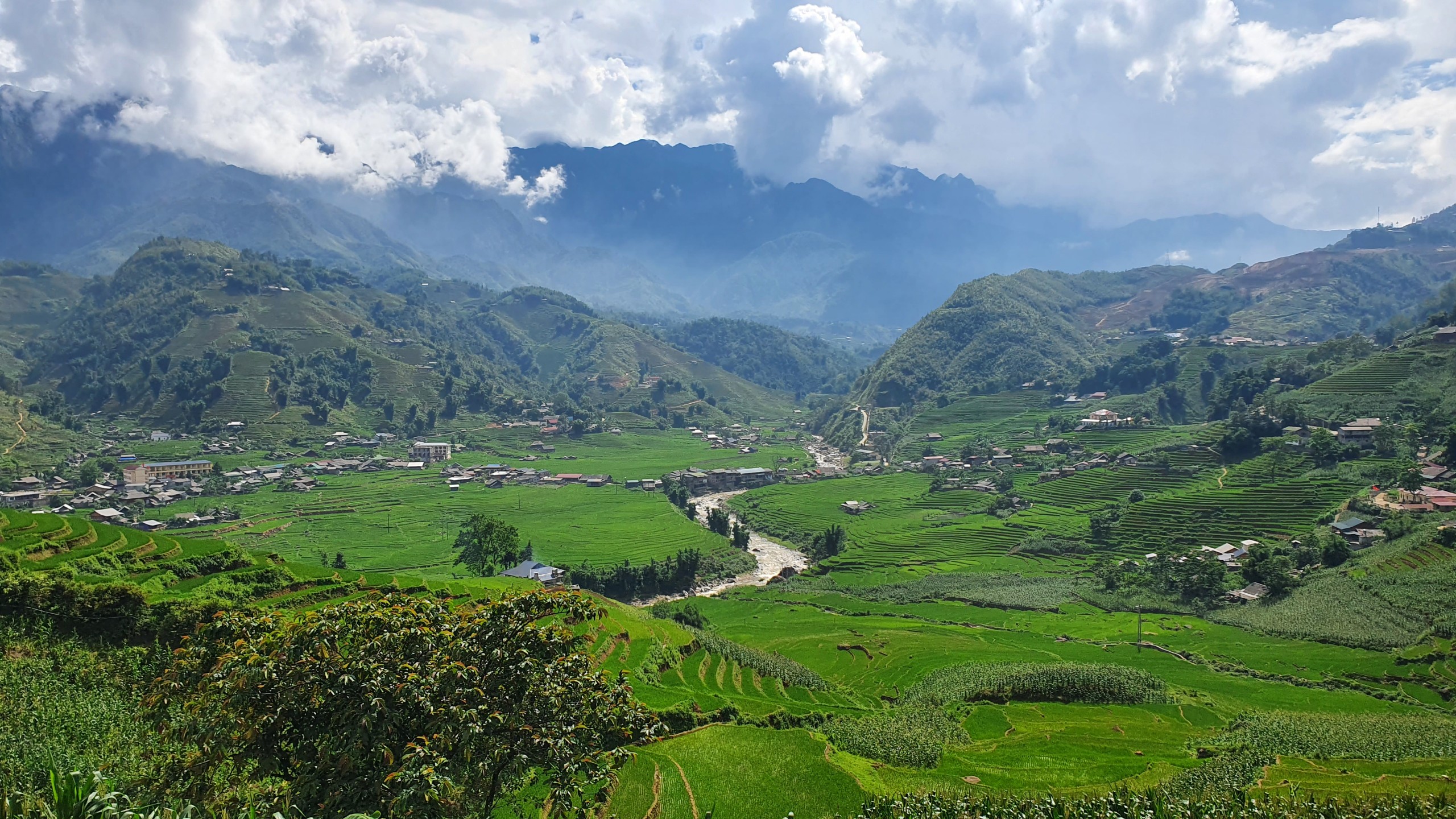 萨帕以其壮观的山谷景色而闻名,在晴朗的日子里可以看到稻田,从上面看四面都是高耸的山脉