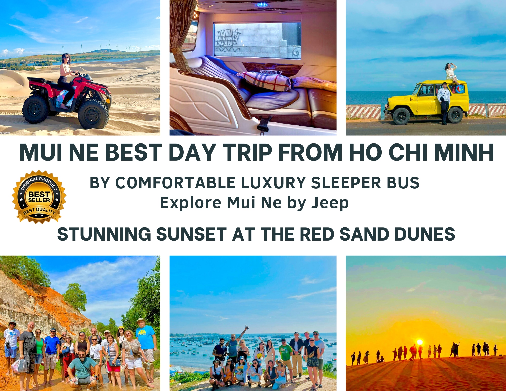 从胡志明市出发最好的一日游之一是美奈,让我们乘坐舒适的巴士往返,2小时45分钟好好休息到达美奈,度过一次愉快的旅行。从一区出发,你的行程将会很有趣——“仙女溪”、当地传统渔村、白沙丘拍照、乘坐沙滩车或吉普车、荷花湖、红沙丘,精致的日落。让我们给您最难忘的旅行!有友好的导游和吉普车司机