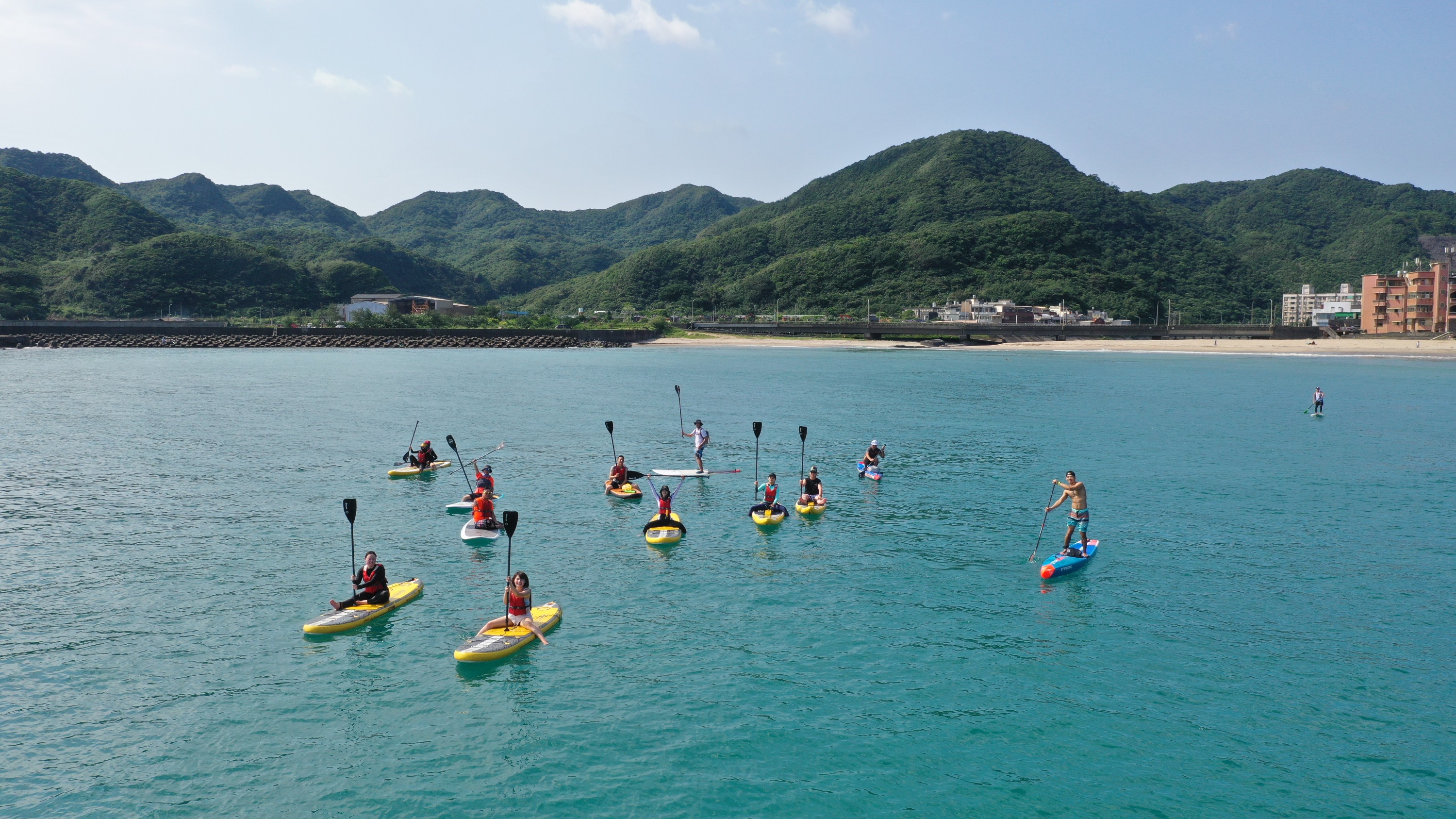 翡翠湾位于金山跟基隆中间,拥有长达1500公尺的半月型细白沙滩,占地辽阔,周遭有知名渡假村、游乐设施、多元的水上活动,无论是好友聚会或家庭亲子出游都适合玩上一整天,就让其中半天来玩玩SUP吧!玩SUP的前后时段也很适合享受沙滩、洁净海洋、水上娱乐设施喔!SUP - Stand Up Paddle立式划桨,是从冲浪板发展出来的改良玩法,站立在板上持奖划行,可以让你探索海洋、利用SUP享受不同的游玩乐趣,无论站着玩、坐着玩、趴着玩,通通都好玩!由专业教练带领,不但玩得开心也玩得放心。