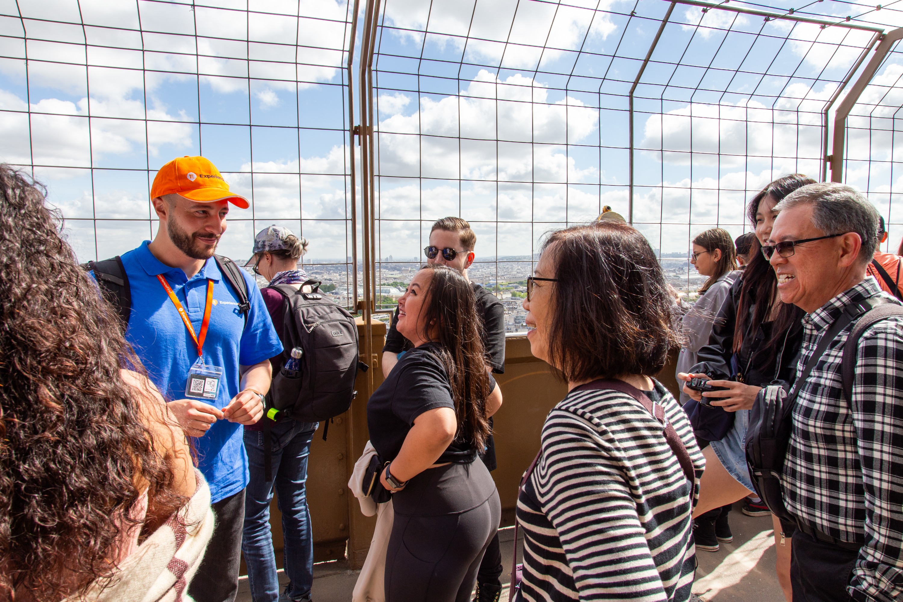 参加埃菲尔铁塔导览游,您将了解其历史,并在二楼饱览巴黎全景。升级至顶层,探索香槟酒吧和古斯塔夫·埃菲尔重建的办公室。游览结束后,您可以自由探索较低楼层。