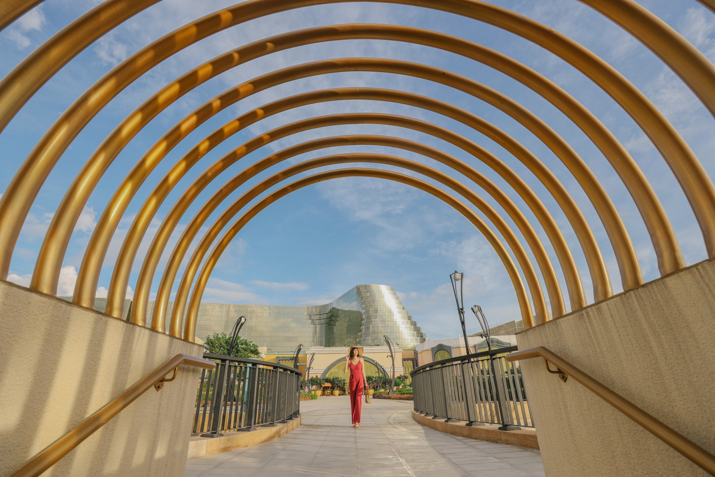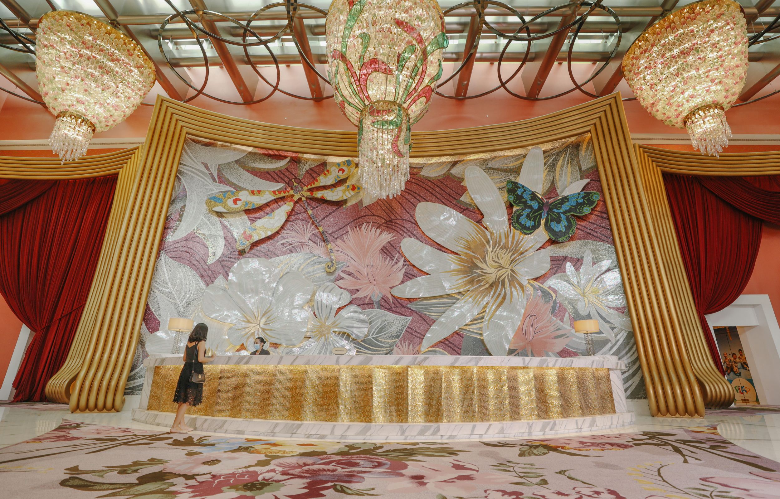 在户外沐浴后,您可以到室内游览一下,欣赏酒店的玻璃和金色内饰。拍照片并将其发布给全世界看!