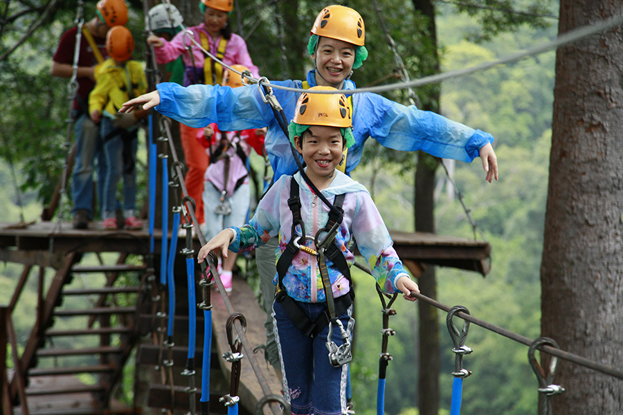 在体验爬树和滑索等刺激活动的同时,了解森林保护知识