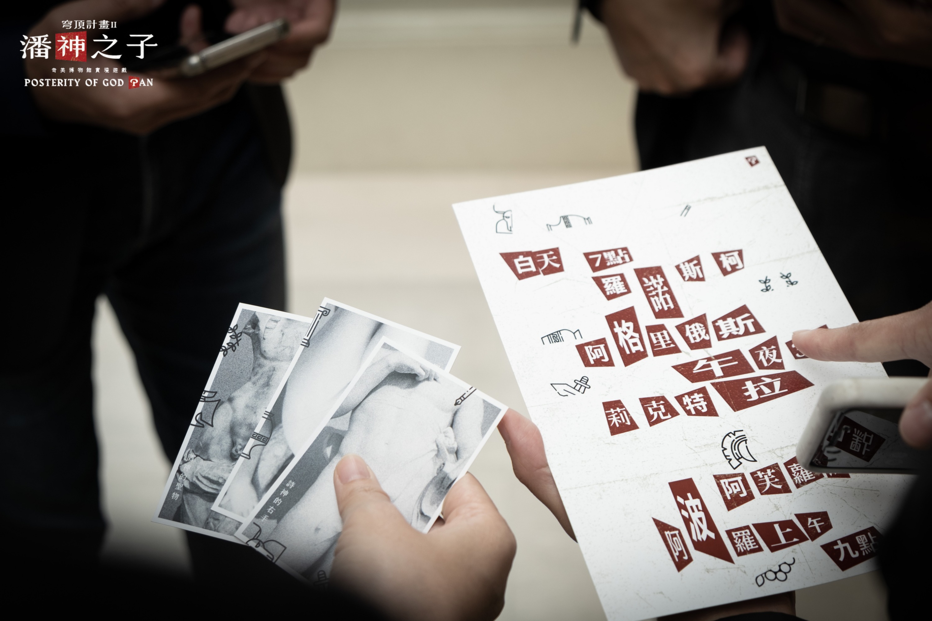 奇美博物馆中的三座雕像在半夜凭空消失,现场没有破坏痕迹也找不到监控影像,展台上只剩下与古希腊神话相关的信函… 当警方全力追查失窃藏品时,由玩家扮演的「六奇士」宝藏猎人团却现身博物馆,指出窃盗者的目的并不是为了嘲笑警方,而是一个狂妄的犯罪预告! 面对神秘组织「潘神之子」接二连三的挑衅,身为六奇士的你,是找出真相…还是卷入更多的谜团? 在实境游戏过程中,玩家必须在时限内逐一破解潘神之子发出的神秘预告信,才能成功守护怪盗亟欲偷窃的希腊神话主题藏品,并将所有潘神之子成员绳之以法。 在缉捕怪盗的过程中,观众还能同时认识常设展中的希腊神话主题藏品与以及故事。