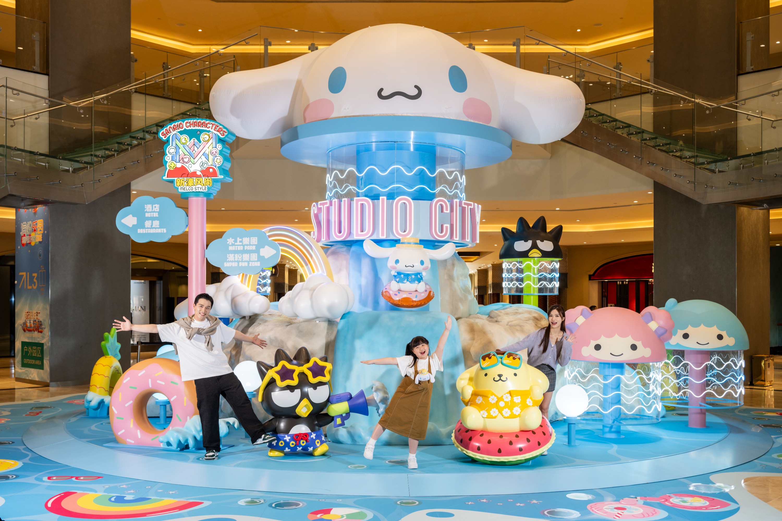 整个夏天,阳光照耀,一家大小都可以在户外园区度过愉快的玩水时光,刺激满FUN,包括激战20米高 「冲天水龙卷」5条滑水道;多条滑梯、瀑布连嬉水点共62个,更有瞩目全场的「黄金大水桶」定时倾倒;孩童专属的嬉水乐园,以及以热带森林河流为主题的「绿野游踪」漂流之旅。