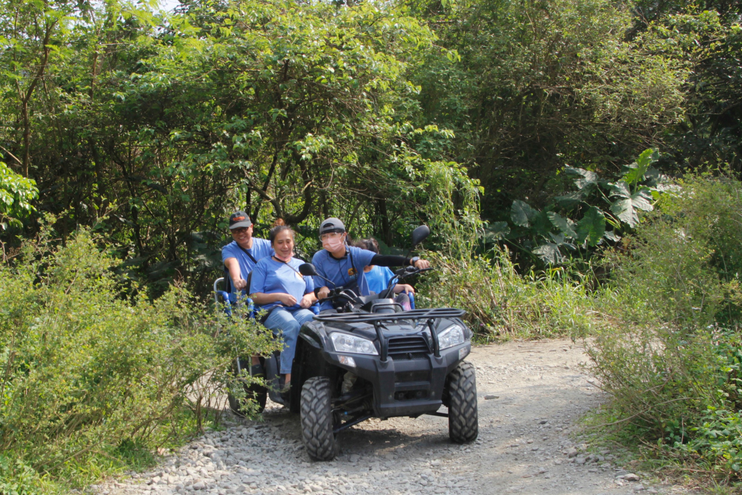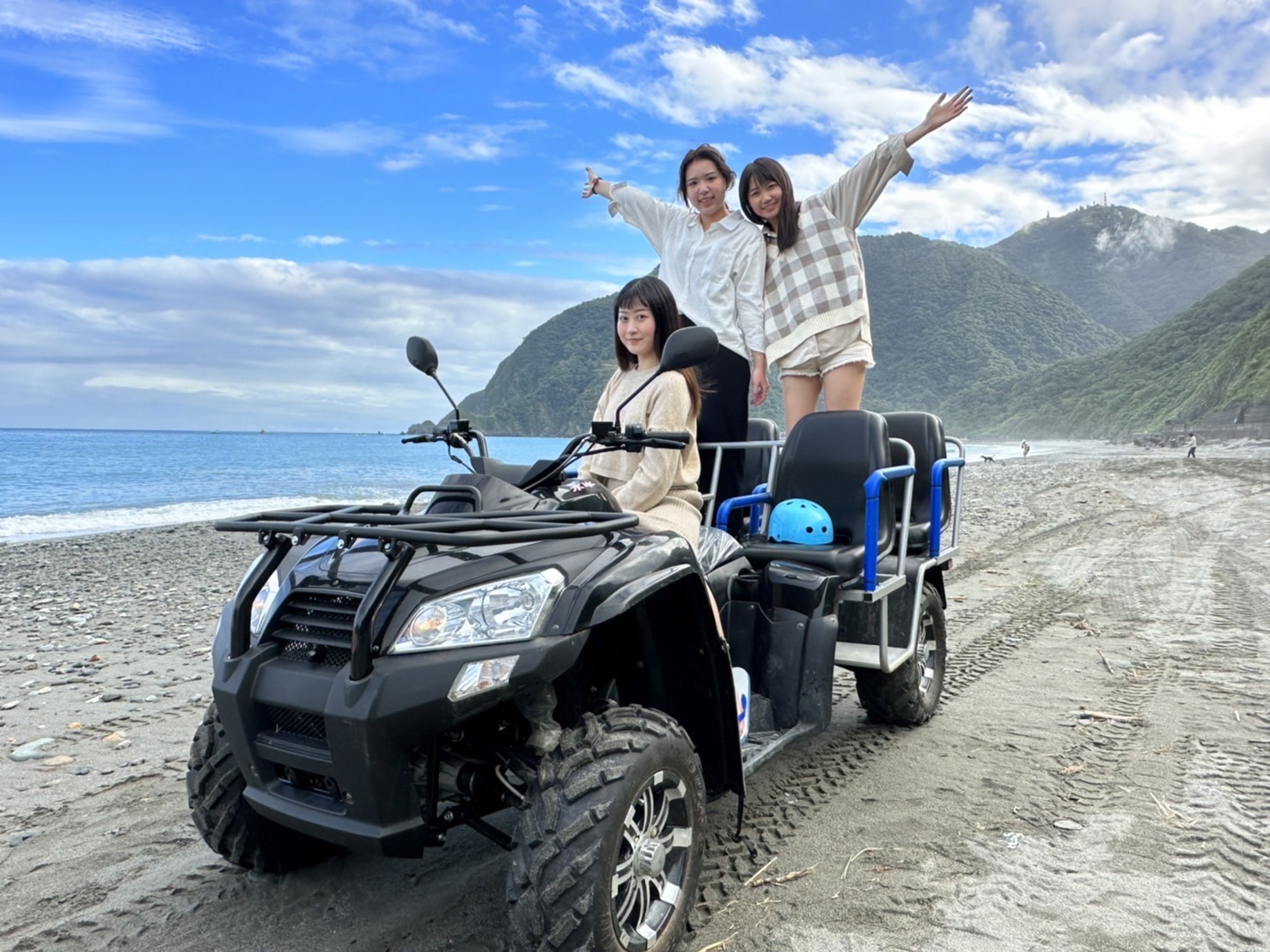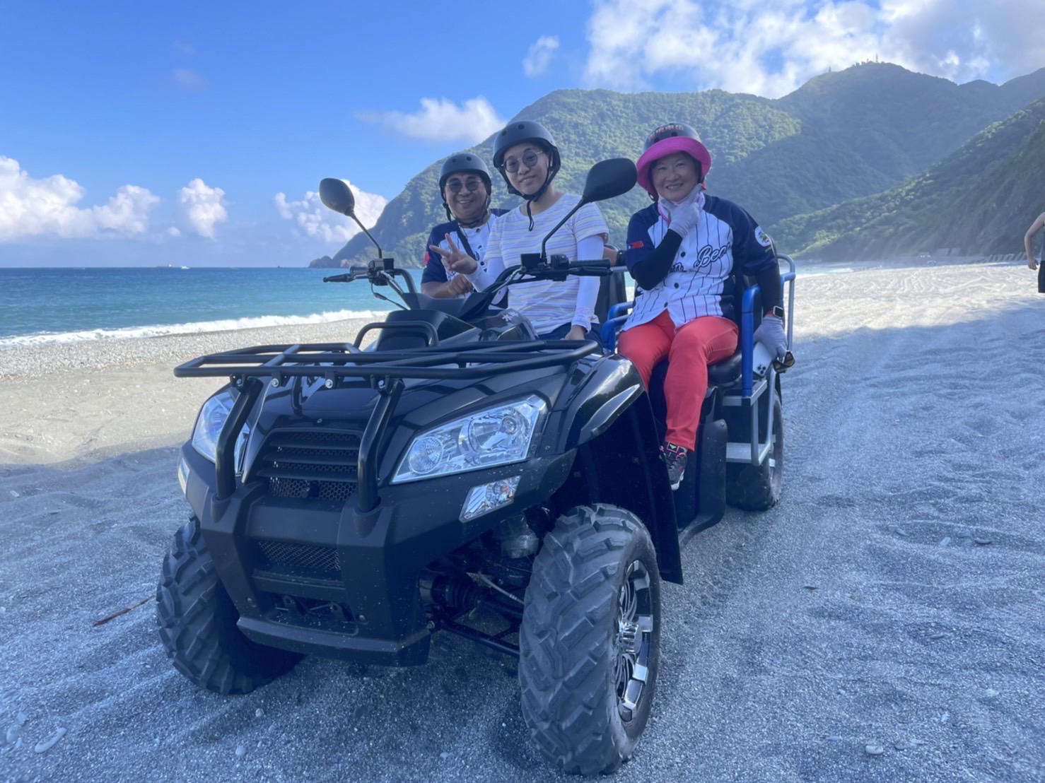 * 一般人对于这种称为「ATV」的越野车会叫它沙滩车,但其实这种车正如其名 All Terrain Vehicle(全地形越野车),商户将它设计为一项安全且符合亲子共乘的越野活动,全程将依循专业的带队教练指示,另提供成人或儿童的安全护具及亲子共乘的安全揹带,并依教练判断全程控制速限。