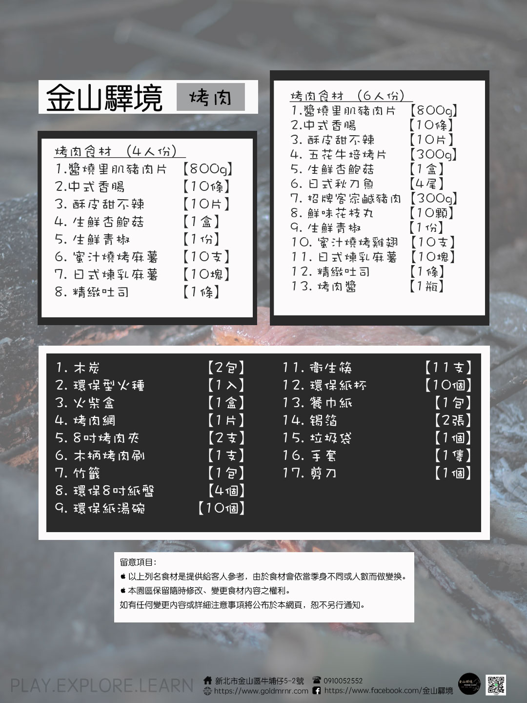 * 当日遇台风或地震等不可抗拒之因素时,依新北市政府公告为判定准则,可延期订位并保留半年。行程当日遇不可抗拒之天灾人祸时,例如:道路中断或山崩、下雪或有立即性危险时,园区保有延期或取消之决定权,若有延期或取消露营时,园区会主动通知预约客,客人在接获通知时务必考量安全性,请勿执意要上山