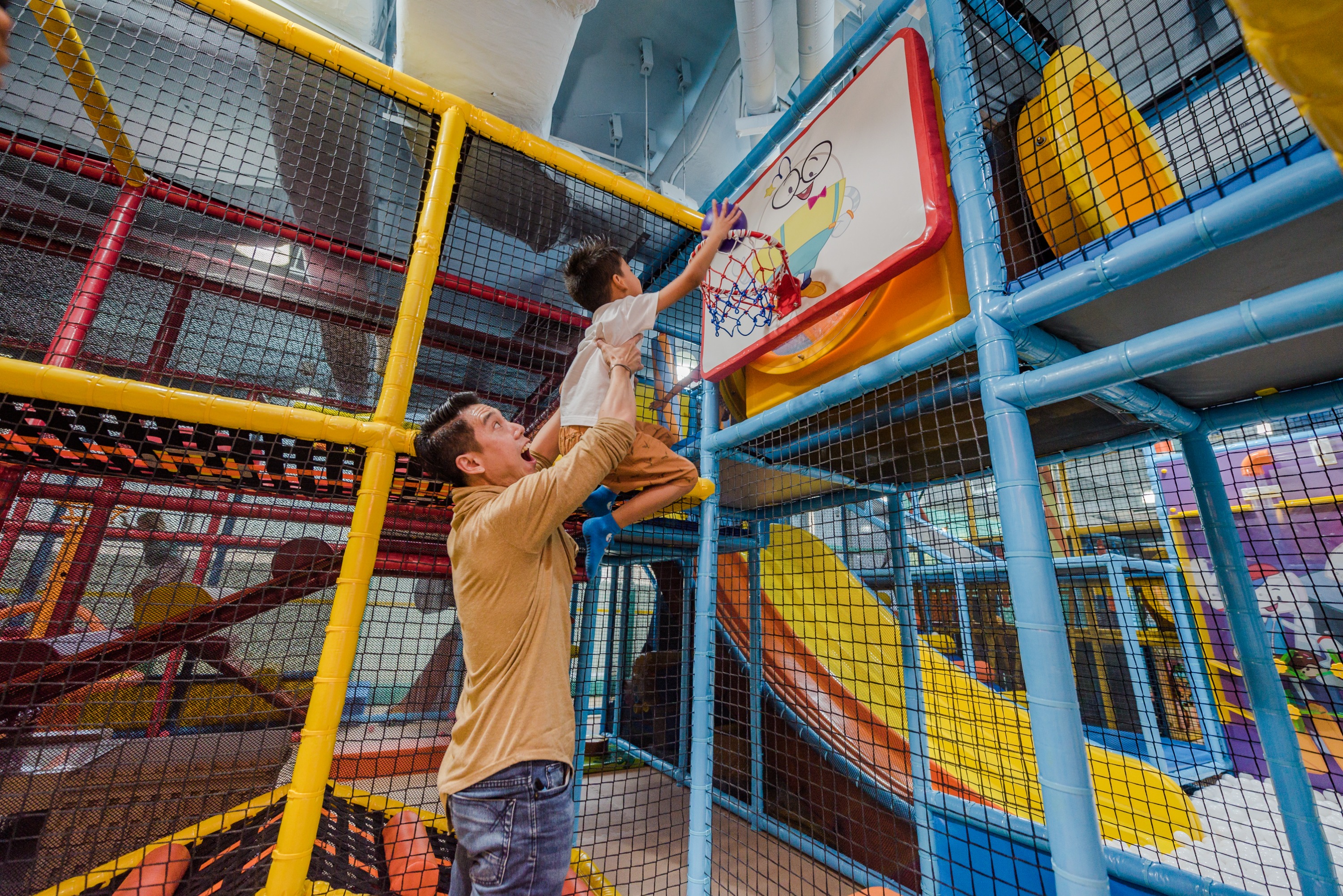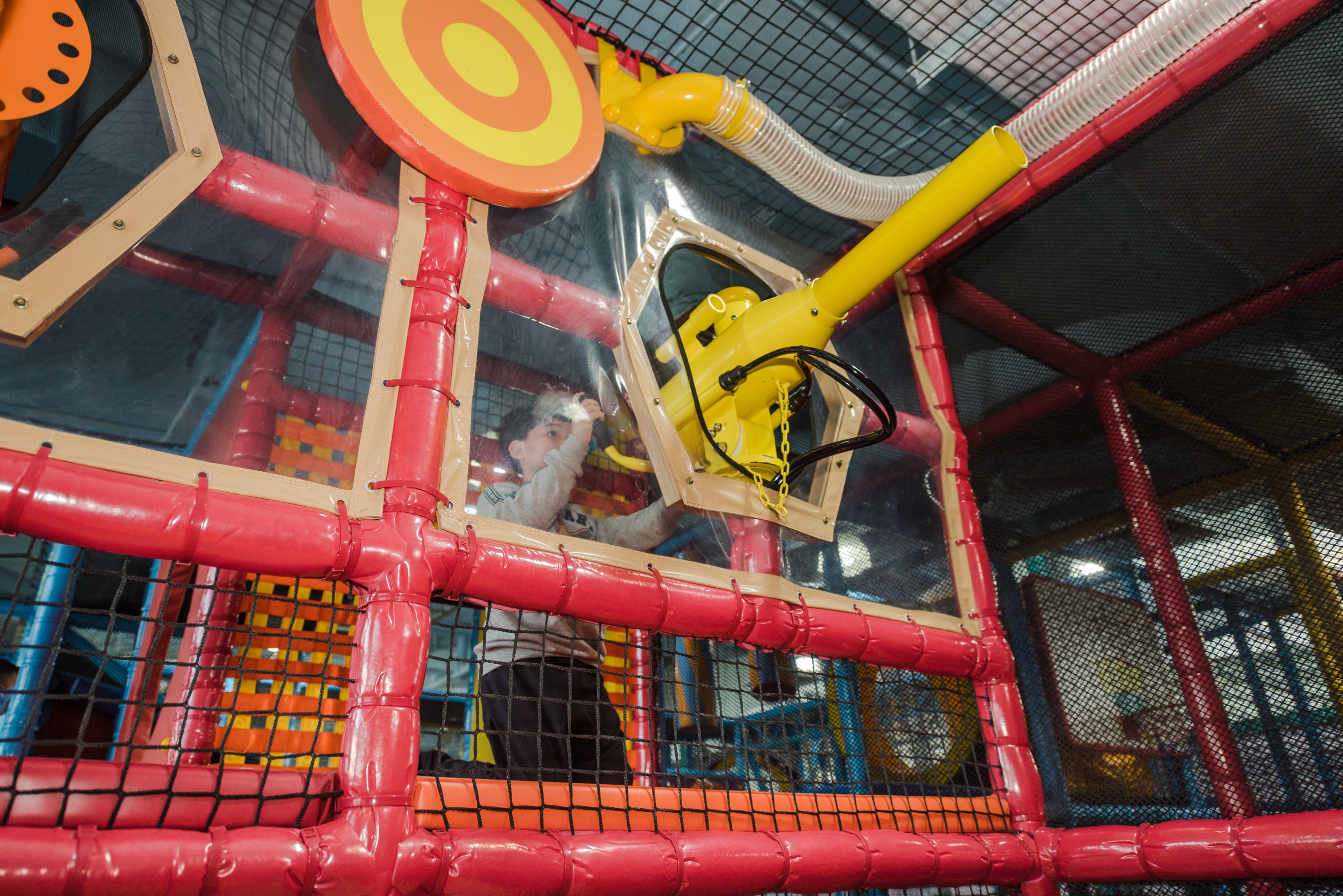 * 攀爬、空中射击球竞技场、蹦床、波浪滑梯、球池、迷你篮球、迷宫等等。