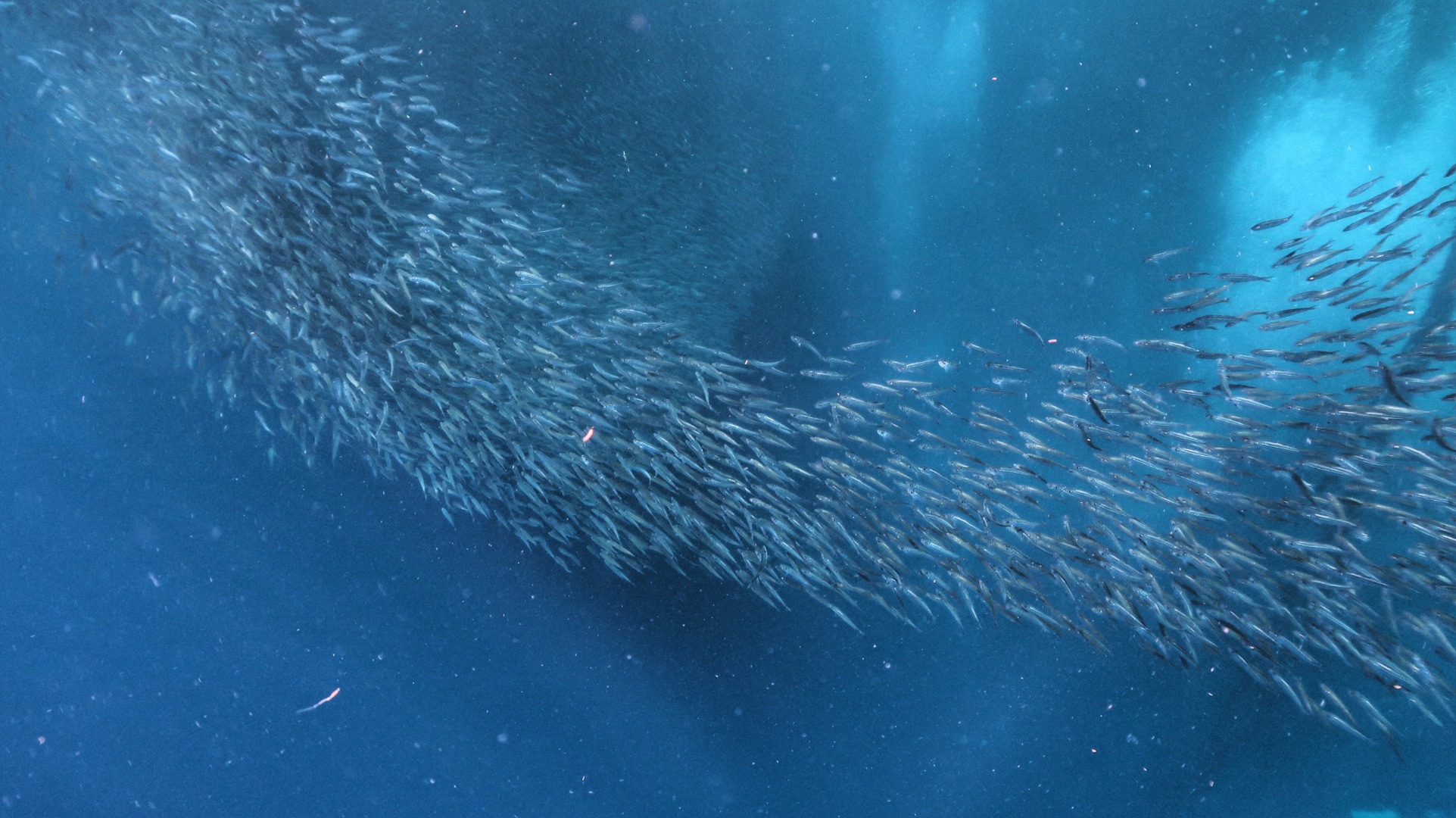 在 Pescador 岛的水域巡游,留意游过的海豚